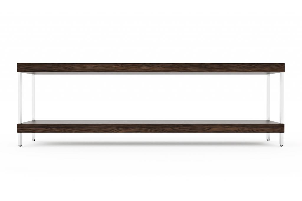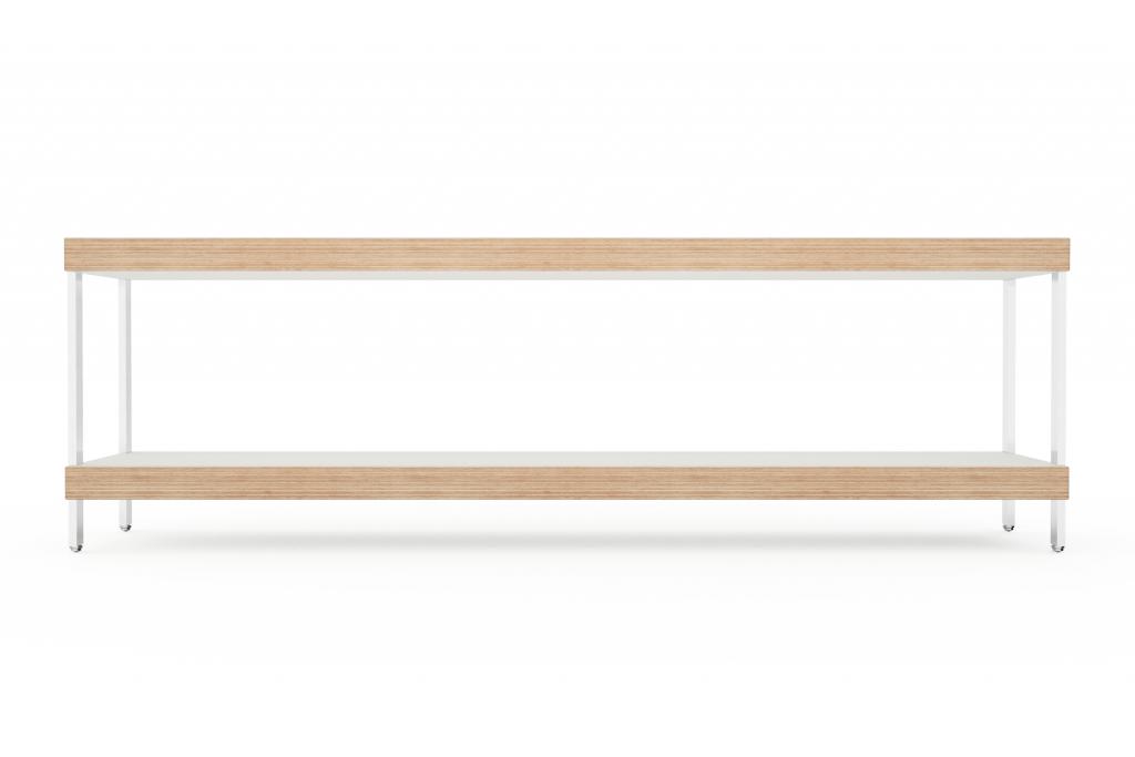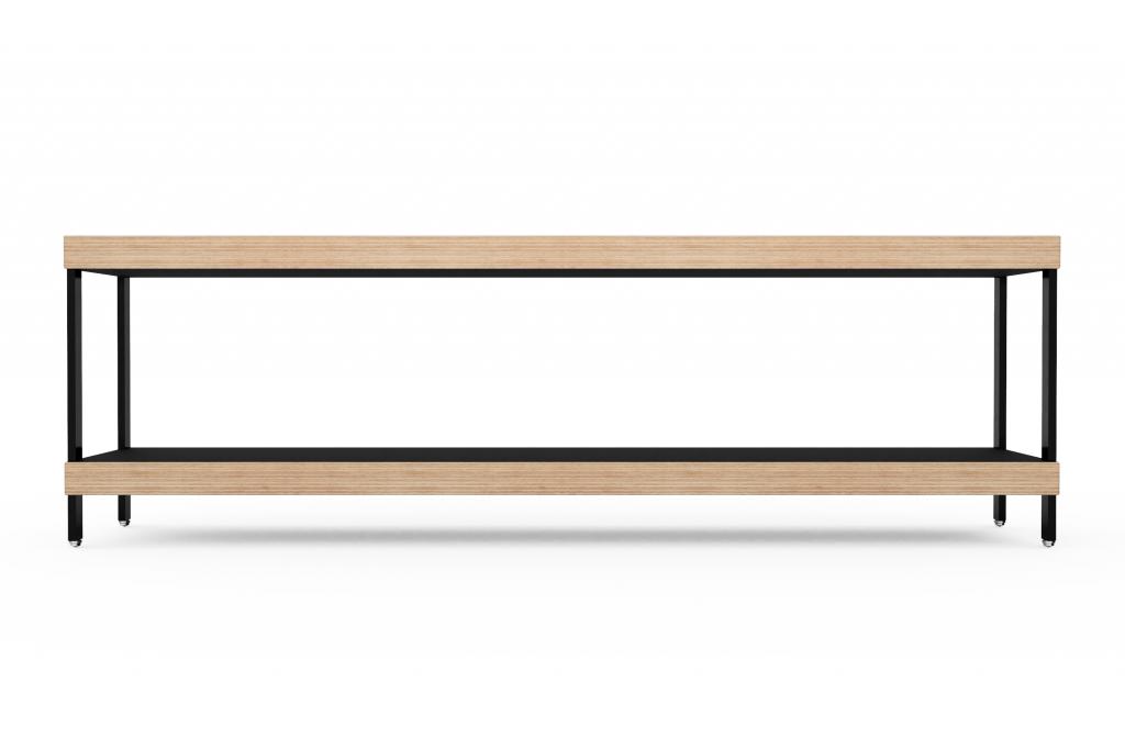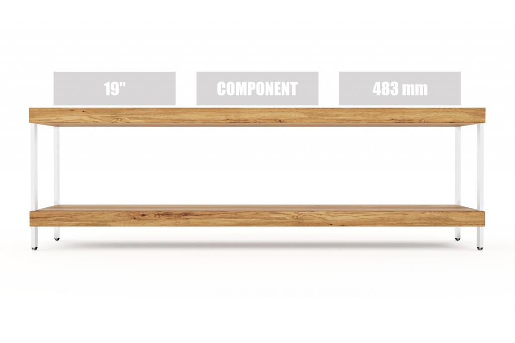 Es besteht aus zwei miteinander verbundenen, 55 mm starken Boards der Dimension 180 x 50 cm. Die zwei Boards sind seitlich durch jeweils vier Stahlschrauben mit den hochwertigen, geschliffenen und eloxierten Stützen aus massivem Aluminium verbunden. Hierdurch entsteht ein höchst stabiles Modul. Durch den lichten Abstand von 35 cm zwischen den beiden Boards, lassen sich wunderbar Schallplatten oder größeres Equipment darin verstauen. Das untere Board bietet zusätzlich etwa 10 cm Abstand zum Boden. Zwischen den Stützen garantieren 177 cm Breite ausreichend Luft zum Atmen für Ihr Equipment oder viel Platz für über 300 Schallplatten.