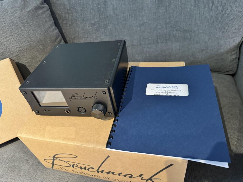 Benchmark HPA4 preamp + headphone amp, black. This compact amp can beautifully feed nearly any dynamic or planar headphone out there.