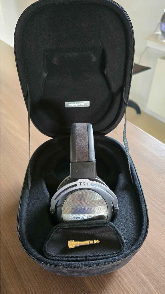 Verkaufe meinen Beyerdynamic T5p2 im quasi Bestzustand. Der Kopfhörer funktioniert absolut einwandfrei und ich habe vor kurzem Bügel und Ohrmuscheln mit Originalteilen von Beyerdynamic getauscht, so dass er Neuzustand hat. Der Kopfhörer klingt absolut neutral, offen und ausgewogen. Aufgrund seiner niedrigen Impedanz kann er auch an Mobilgeräten mit Mini-Klinke betrieben werden. Ein absoluter Traum. Für den Gebrauch an der Stereoanlage gibt es entsprechende Adapter und ich lege noch ein Original-Verlängerungskabel von Beyerdynamic in der Länge von 3,0 m bei. Dies hatte damals allein schon einen Wert von 120 Euro. Der Kopfhörer wird einfach zu wenig bei mir genutzt und soll einem anderen Freude bringen. Bei Fragen gerne melden, ansonsten stehen die technischen Daten im Netz zur Verfügung.