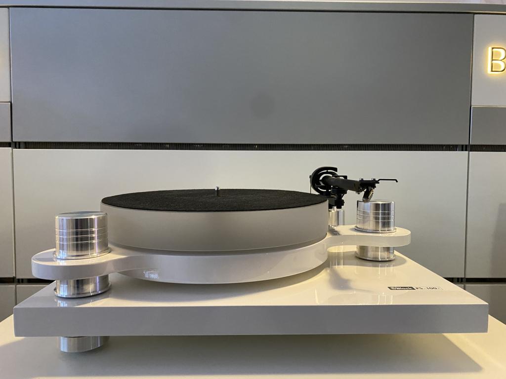 Der PS-100+ kommt mit einem tollen Design und einem sehr gutem Preis-Leistungs-Verhältnis daher ! Kräftiger 1,5 kg schwerer, externer Motor. Geschwindigkeit wird wie bei vielen manuellen PLattenspielern durtch Umlegen des Riemen 33 und 45 RPM möglich gemacht. Das Chassis besteht aus hochglanzlackiertem MDF und massiven, präzise gearbeiteten Aluminiumsockeln; dieser ruht auf justierbaren Spikefüßen. Der Plattenteller besteht aus Acrylglas, die Slipmatte ist aus Filz und der nur 11,5 g schwere Tonarm inklusive 65 g Gegengewicht sowie ein Antiskating-Gewicht runden die Ausstattung ab. Diese findet man sonst nur bei Geräten jenseits der 2000 Euro Grenze. Eine Besonderheit, der Tonarm wird, um unschöne Clip-Halterungen, eine unschöne Optik und einen gestörten Betrieb zu vermeiden, magnetisch in seiner Ruhestellung gehalten. Das Ortofon OM5E System ist als gutes Einstiegsystem vorinstalliert und ausgerichtet. Der Vorteil, Ortofon bietet verschiedene höherwertige Ersatznadeln ohne gleich den Tonabnehmer tauschen zu müssen., somit ist Tuning einfach gemacht. Ein Chinch-Anschlusskabel mit Erdung und ein Paar Baumwollhandschuhe zum schonenden Aufbau sind selbstverständlich im Lieferumfang enthalten. Klangliche Verbesserungen sind mit einem Austausch des Cinchkabels möglich, wir beraten Sie gerne.