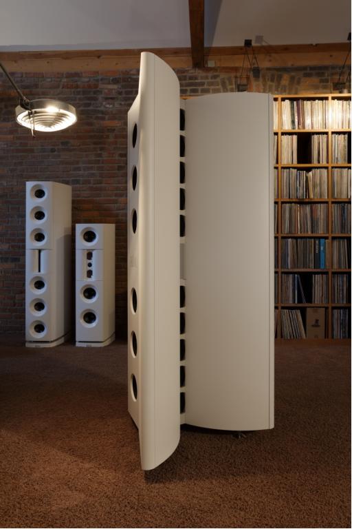 Vertikalhorn mit 12 x geregelte 8“-Basschassis / 10 x 6“ Mittelton-Hochleistungschassis / 1 Valtec-Zylinderwellenstrahler / 12 Einzelverstärker mit insgesamt über 3.000W pro Lautsprecher - Maße 78/63/179cm B/T/H - 150kg