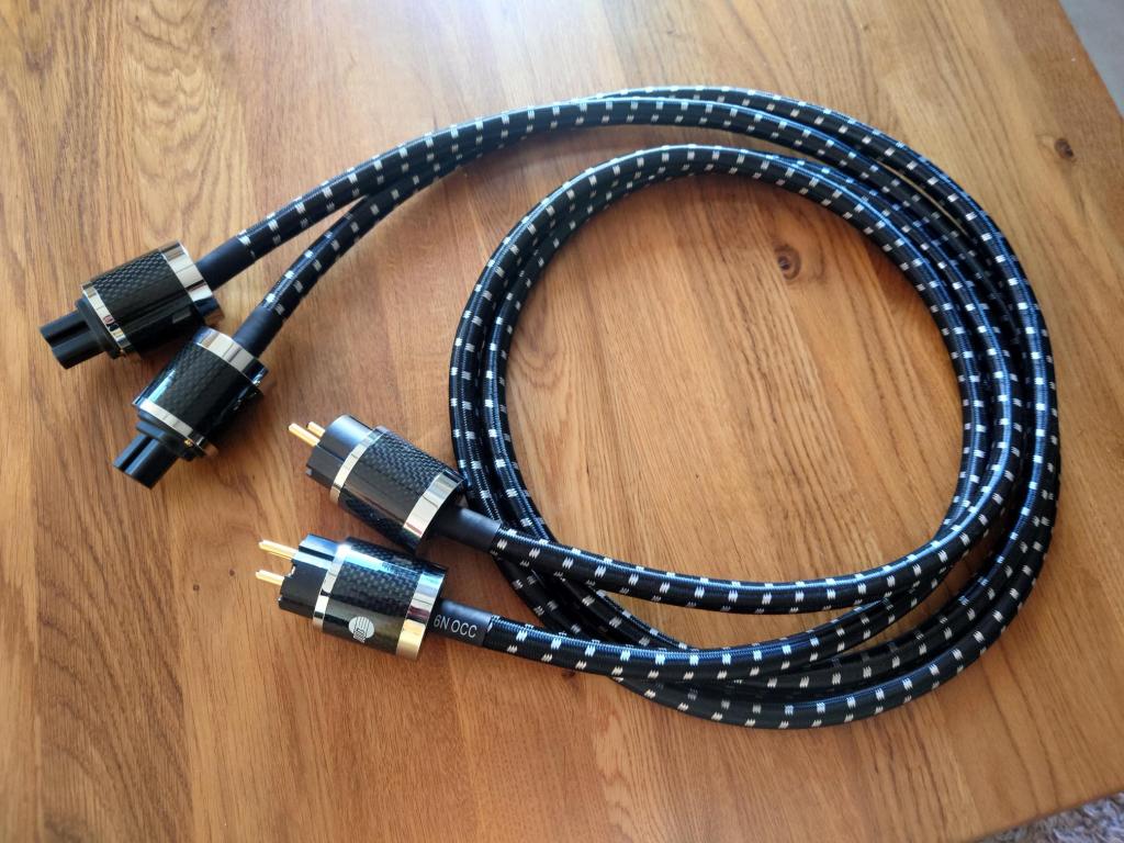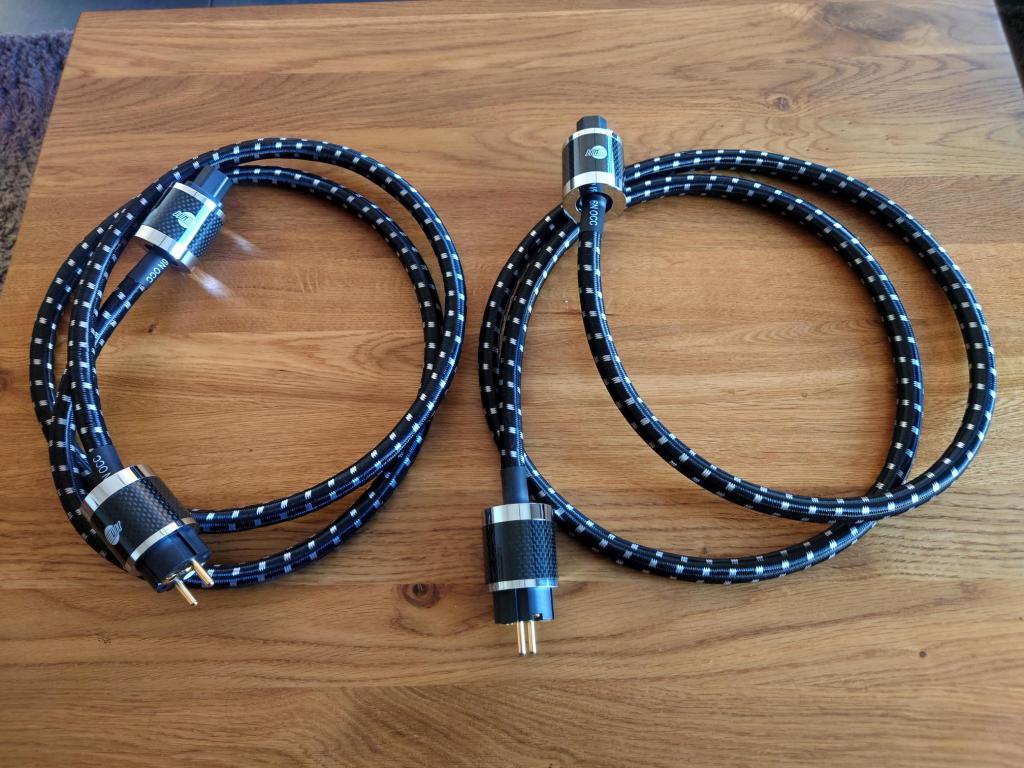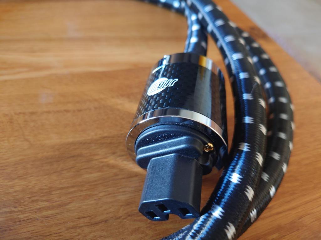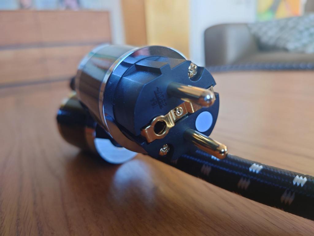Eine doppelte Schirmung aus Aluminiumfolie und -geflecht blockiert elektromagnetische Störungen. Der Außenmantel aus PVC mit Baumwollgeflecht erhöht die mechanische Stabilität und Flexibilität. Der Schuko-Netzstecker und die IEC-C15-Kaltgerätebuchse sind mit Carbonfaserhülse und vergoldeten Kontakten ausgestattet – langlebig und kontaktstabil.