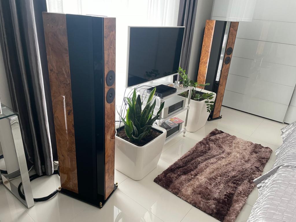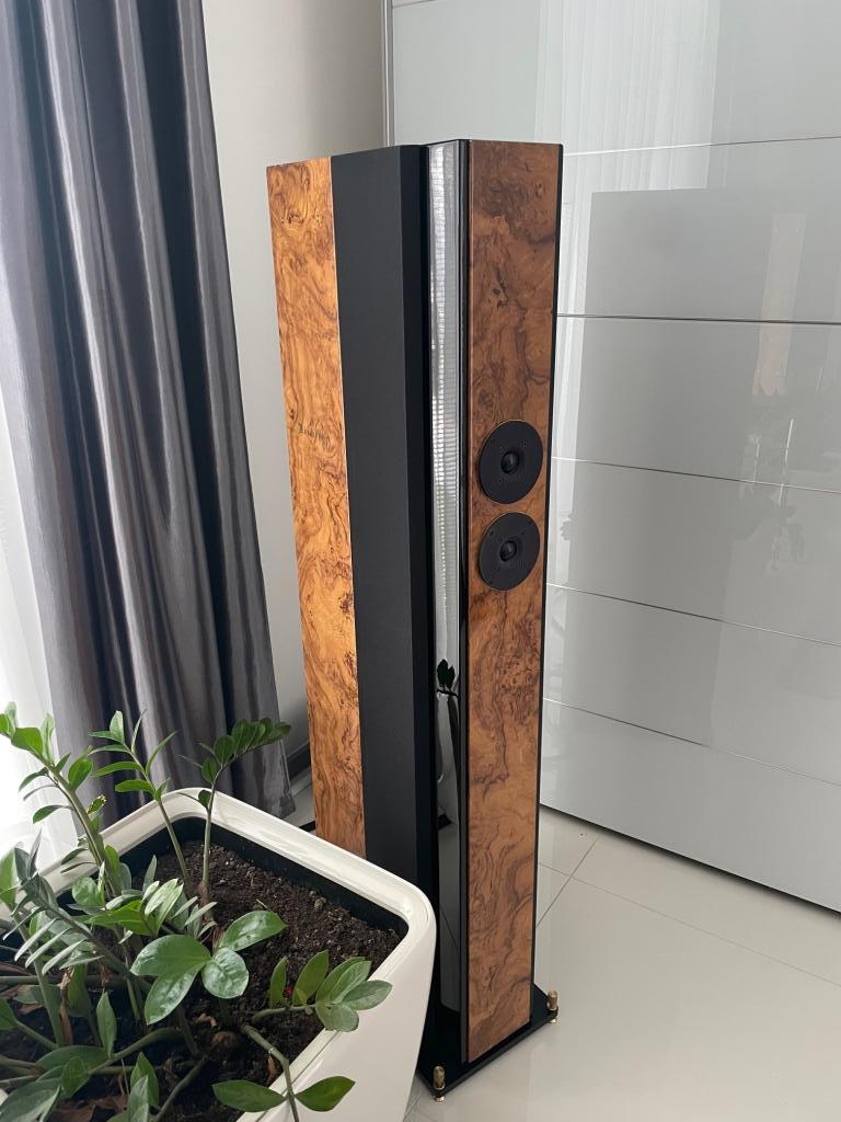 An exceptional musical sound creation and patent from HANS DEUTCH. BOSENDORFER VC -7 with 4 full-range speakers and 2 tweeters provides a holographic three-dimensional image with exceptional tones and resolution. Bass is reproduced by 2 resonance panels on the sides of the VC -7 and is activated by the rear radiation of 4 horn-loaded speakers. The best tube and transistor amplifiers. Simply unbeatable. In an elegant shape with a height of 1.35 m, it impresses with space loading and rich harmonics that conventional speakers absorbing the rear radiation of the speakers cannot reproduce. Unique coherence of bass, mid and low tones, mids and highs. Excellent phase coherence, excellent musical information about the recording. Flood price 15700 euro
