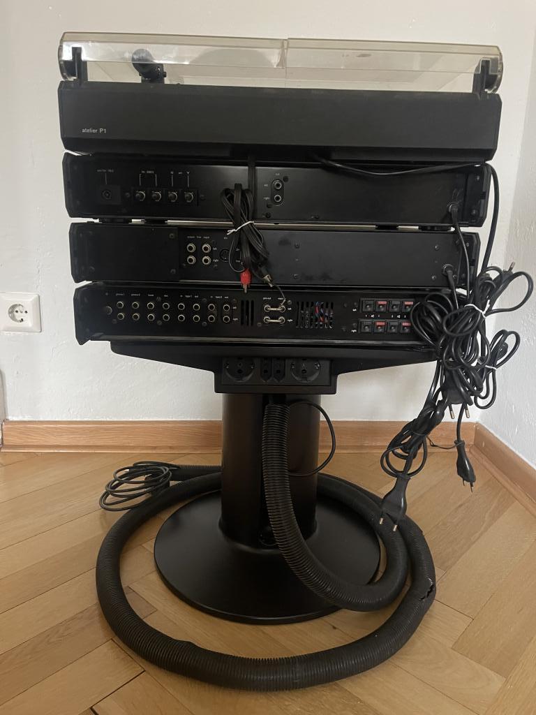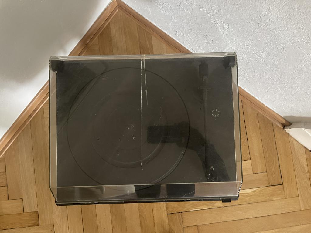 Verkaufe "unsere erste Stereo-Anlage", die meine Mutter Anfang der 1980er gekauft hat. In der Version existierte noch kein CD-Player; verkauft werden Verstärker, Tuner, Kassettendeck und Plattenspieler, alle mit Alters- und Gebrauchspuren auf (siehe auch Deckel des Plattenspielers).