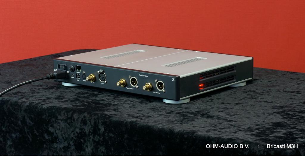 Analogue: The analogue output buffer is a class A output amplifier, separate for the balanced XLR outputs and the Cinch outputs. An excellent solution in terms of sound. The Bricasti M3 contains an analogue-controlled volume control circuit. If desired, you can have the Bricasti M3 drive power amplifiers directly. The analogue output can deliver 8 volts. The volume control ranges from -60 dB to +8dB. At the 0dB setting, the Bricasti M3 switches the analogue volume control out of the signal path, making it a direct D/A converter output without the extra buffers