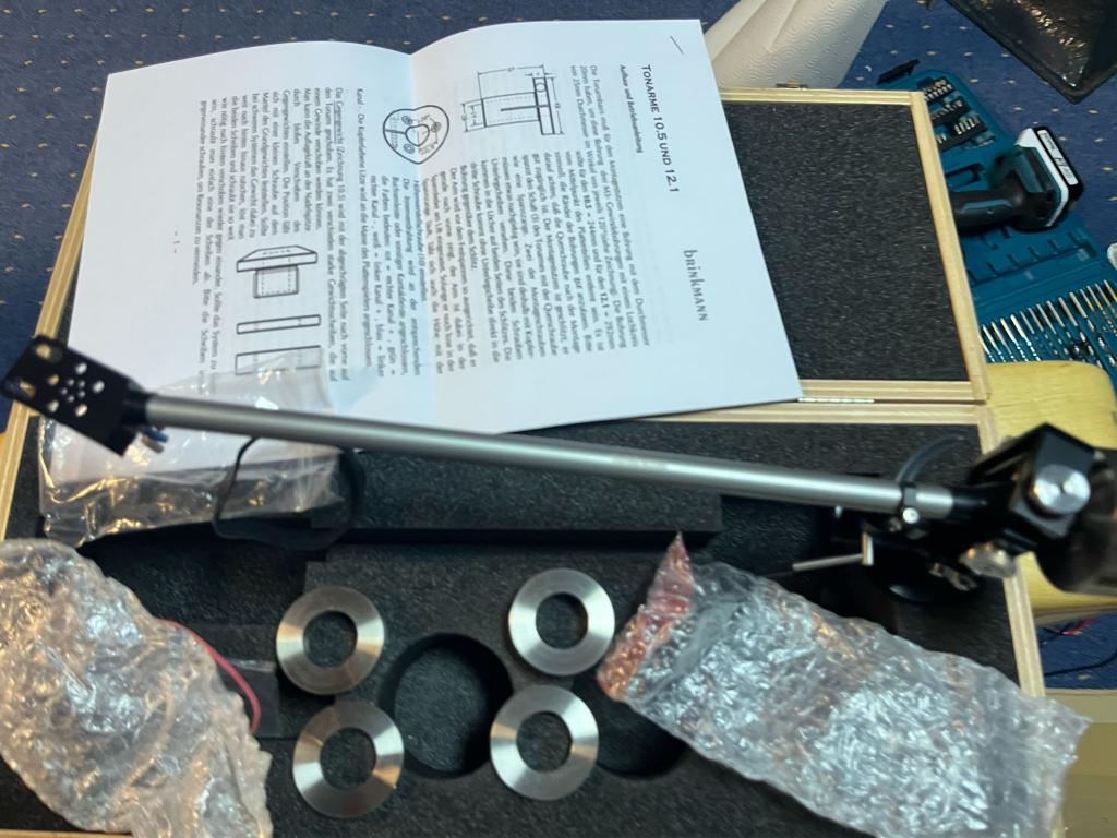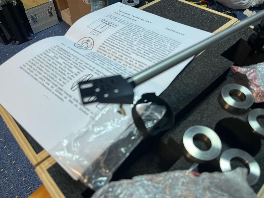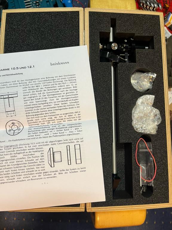 Auch ein Brinkmann Tonarm 12.1 in OVP ist vorhanden. Er ist fast nicht gespielt .Dafür wäre wegen der Länge von 12 Zoll eine unabhängige Basis erforderlich.