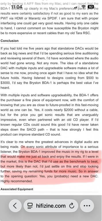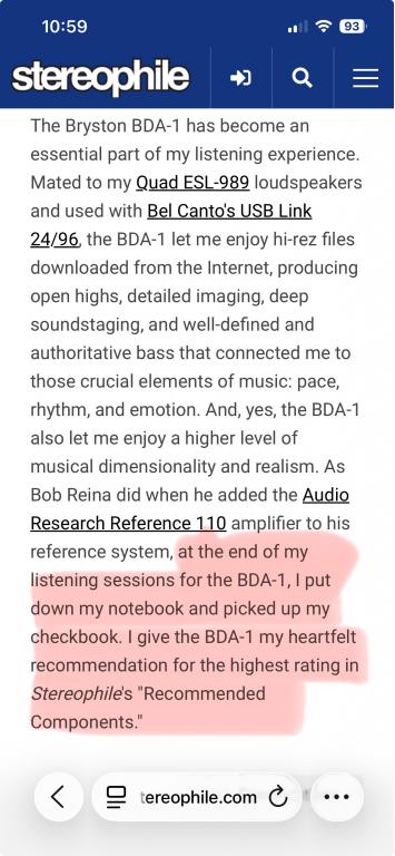 Bryston ‘Award Winning’ D/A-Wandler, BDA-1