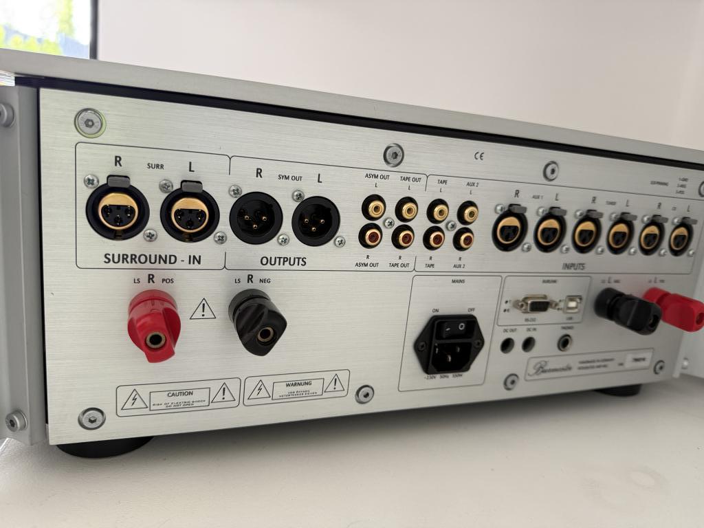 Großartiger Vollverstärker aus dem Hause Burmester. Fantastischer Klang. Wurde gerade bei Burmester überholt (Steuerleitungen wurden erneuert). Kann im Surround Betrieb eingesetzt werden, siehe Bilder.Verkauf erfolgt ausschließlich wegen Hobby Aufgabe. Gerät wird ohne Gewährleistung oder Garantie verkauft. Kann gerne Probe gehört und getestet werden. Versand kann auf Risiko und Kosten des Käufers erfolgen.