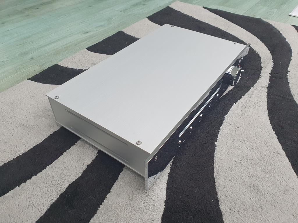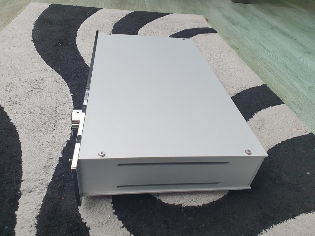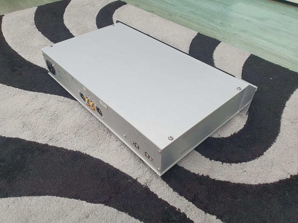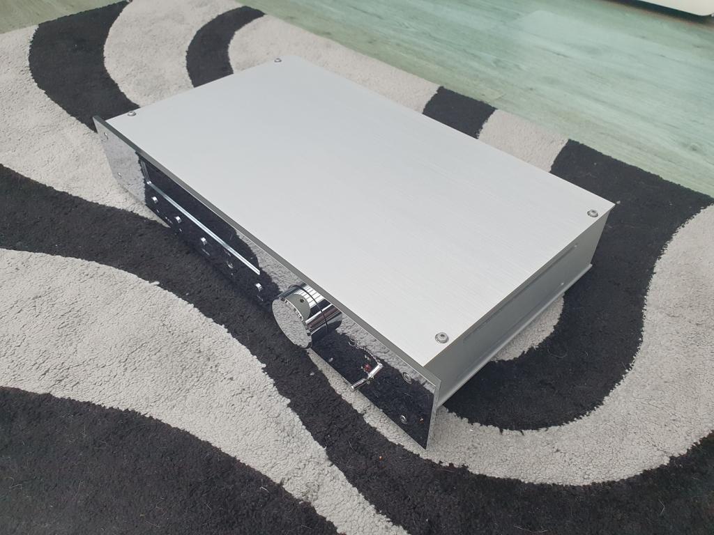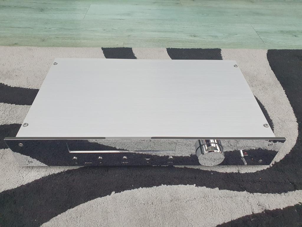 NF-Verstärker: • Symmetrische, diskret aufgebaute und DC-gekoppelte Burmester X-Amp- Stufen (Class-A) mit Offset-Regelschleife • Zusätzliche Siebung der X-Amp-Stufen mit insgesamt 55000μF • Keine Relais im NF-Signalweg, beim Muting wird der Ausgang nach Masse kurzgeschlossen Netzteil: • Streufeldarmer Ringkerntrafo mit einer Leistung von 50VA • Siebkapazität von insgesamt 29000μF allein im Netzteil