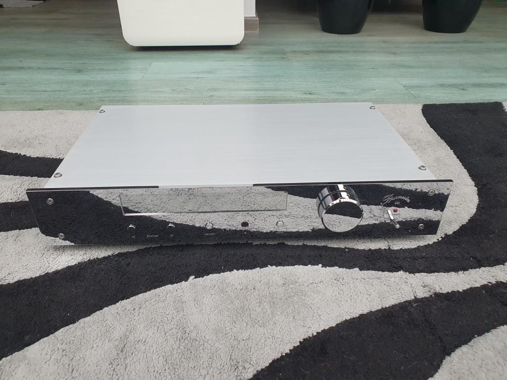 Technische Features Tuner-931 RDS Eingangsteil: • Gallium-Arsenid-Transistoren im Eingangsverstärker mit einer Grenzfrequenz von 1 GHz für lineares Phasenverhalten und konstanter Gruppenlaufzeit • sieben Abstimmkreise für eine hohe Selektion der zu empfangenden Frequenz • aktiver High-Level-Mischer mit einem Intercept-Punkt 3.Ordnung von typ. +30dBm für hohe Intermodulationsfestigkeit (aufwendigste militärische Funktechnik) • vier getrennte Spannungsregler direkt an den Schaltungsstufen für stabile Spannungsverhältnisse im Frontend • zusätzliche aufwendige Stabilisierung der Abstimmspannung mit einer Siebkapazität von 8000μF • Entkopplung der Versorgungspannung des Frontends durch spezielle Filter um eine Überlagerung der Versorgungsspannung der NF-Stufen mit HF zu vermeiden Wide-ZF (IF): • Bandbreite ca. 400kHz (die typische Wide-ZF Bandbreite ist 200-250kHz) • für ein weiches Klangbild wird die Wide-ZF mit zwei phasenlinearen, breitbandigen 8-Kreis-LC-Bandpässen gefiltert, die durch Verstärker entkoppelt sind • Abgleich der ZF an insgesamt 24 Filtern • ZF-Verstärker werden mit symmetrischer Spannungsversorgung betrieben • Verwendung von zwei getrennten Stereodecodern, wodurch jeder Kanal separat optimiert und auf minimales Übersprechen abgeglichen werden kann.