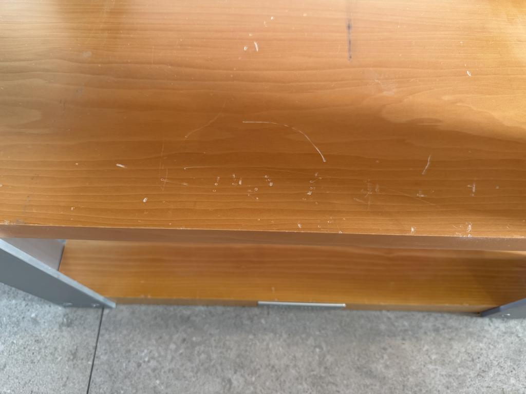 Auf der zweiten und dritten Ebene sind teilweise Kratzer und Gebrauchspuren, welche man evtl. auspolieren könnte. Oben und unten sind so gut wie keine. Die Kratzer sind beim hin und her schieben der Gerätschaften passiert. Welche man natürlich nicht sieht, wenn die Geräte draufstehen.