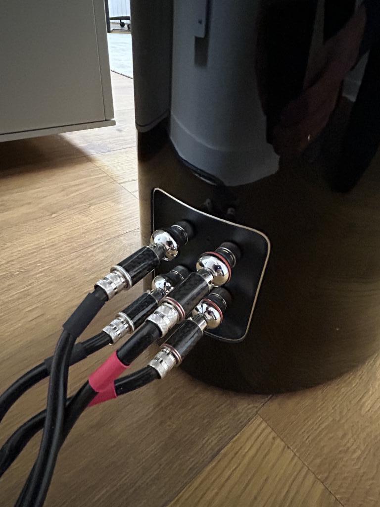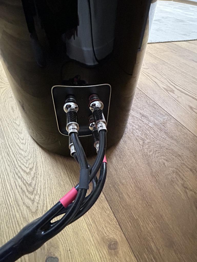 Das Klavierlack-Fnish weist keinerlei Kratzer auf und die Kevlar-Membranen sind nur minimal gedunkelt, fast original. Das Zubehör ist komplett inkl. OVP. Der Lautsprecher verfügt über einen sehr guten Wirkungsgrad und zeigt nicht nur an hochpreisigen Verstärkern einen tollen und vollen Klang.