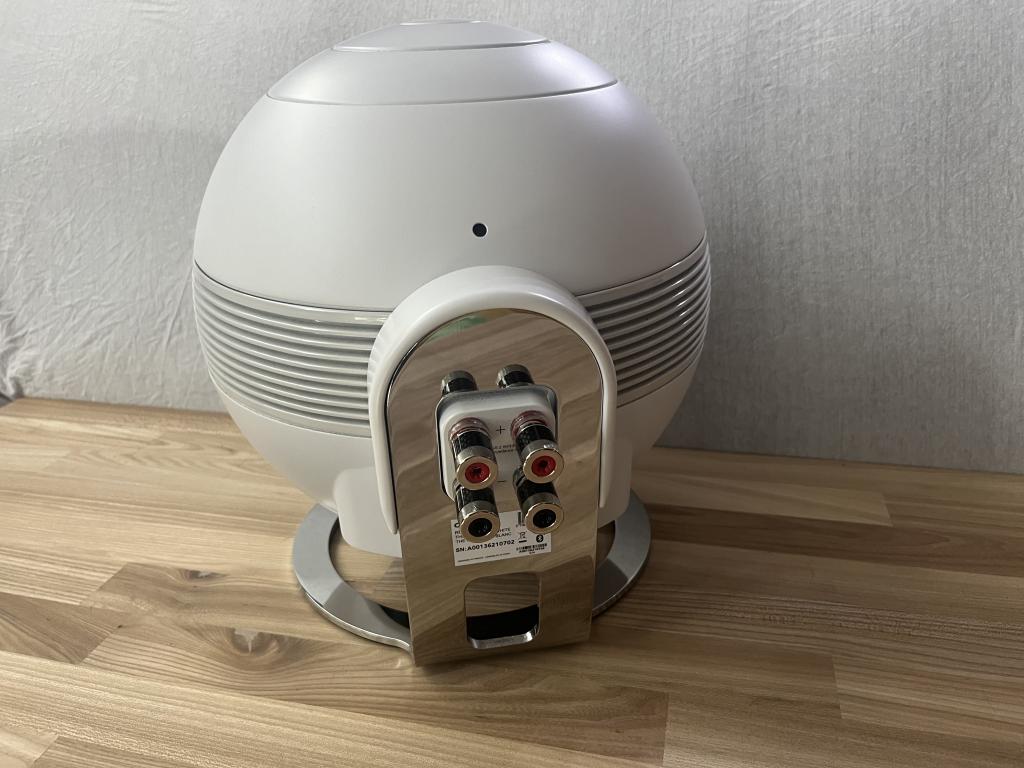 Der Pearl Sub überzeugt mit seiner ikonischen Kugelform, vier Schichten Mattlack, poliertem Ring, magnetischem Metallgitter und einem verchromten Stahlfuß, der das Gerät beinahe schwebend wirken lässt. Optisch wie klanglich ein echtes Statement.