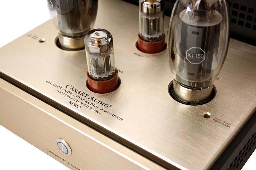 The Canary Audio M120 are first class monoblock amps with dual KT150 tubes delivering 100W per channel. 100% Handcrafted in California, featuring a custom power transformer for robust performance. Ideal for driving challenging speakers, it embodies Canary’s hallmark craftsmanship and powerful sound. The M120 is truly an amp that can sing and it sings loudly.