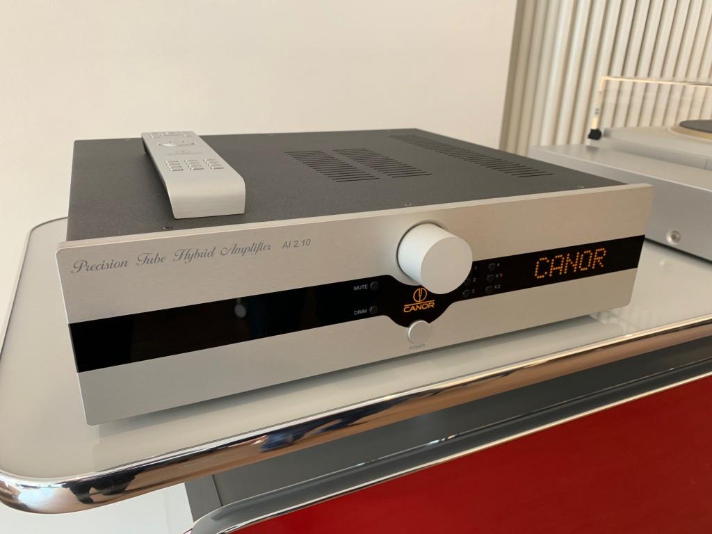 Canor AI 2.10 Hybrid-Vollverstärker mit einer Ausgangsleistung von 2 x 150 Watt an 4 Ohm und 2 x 100 Watt an 8 Ohm. Gebraucht, 6 Monate jung. Top Zustand. Inklusive Originalverpackung und 2 Jahre Garantie.