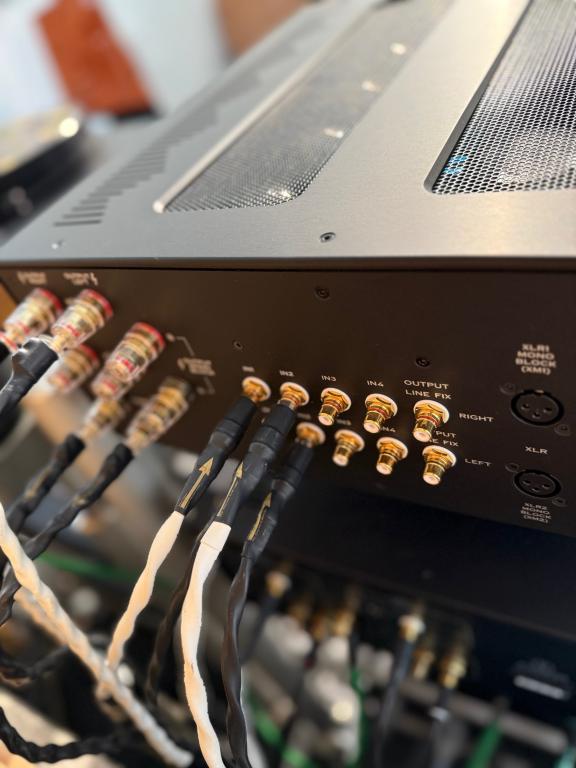 - Eingänge: 4 x RCA, 2 x XLR (XLR sind nur in Monoblockschaltung aktiv)