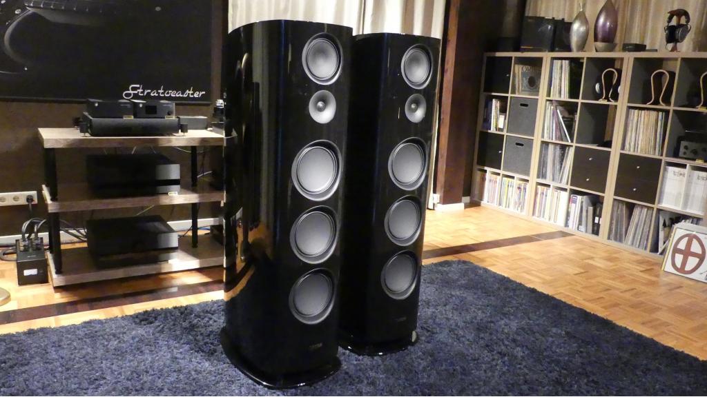 Ein großer Fokus wird auf die Verarbeitung der handgefertigten Reference 1 Lautsprecher gelegt. Die Gehäuse sind in drei Kammern unterteilt, die perfekt auf die verschiedenen Teile der 3-Wege-Lautsprecherkonstruktion abgestimmt sind. Dadurch kann jedes der fünf Chassis seine klanglichen Qualitäten optimal entfalten. Die Bässe werden von drei 219-mm-Tieftönern mit Keramik-Wolfram-Membranen erzeugt. Diese bieten zusammen mit dem neu gestalteten Bass-Guide eine klare und dynamische Tieftonwiedergabe bis hinab zu 18 Hertz. Der 174-mm-Mitteltöner verwendet dasselbe Membranmaterial wie die Tieftöner und sorgt für nahtlose Dynamik im Mitteltonbereich. Der Mitteltöner ist bewusst im oberen Teil des Lautsprechers platziert und trägt wesentlich zur authentischen Darstellung von Stimmen und Bühnenpräsenz bei. Die Treiber sind in die runde Schallwand eingelassen und werden durch spezielle ASW-Abdeckringe (Asymmetrische Waveguide-Ringe) aus POM-Material ergänzt. Diese Ringe dienen im Hochton- und Mitteltonbereich als Waveguides, um die Abstrahlung zu optimieren.