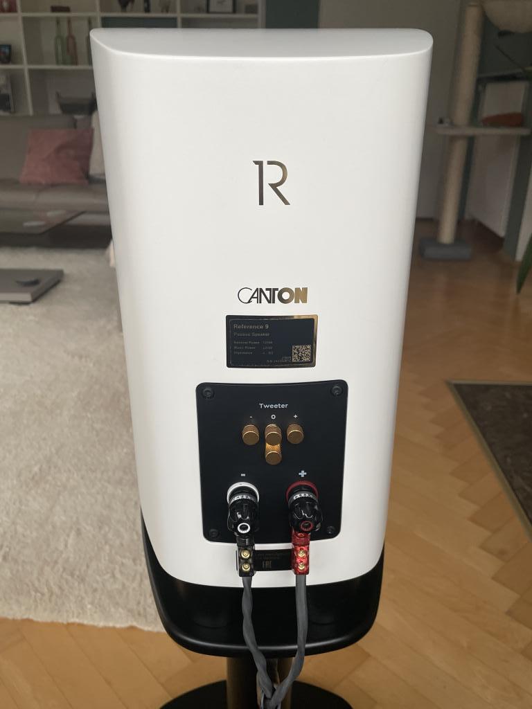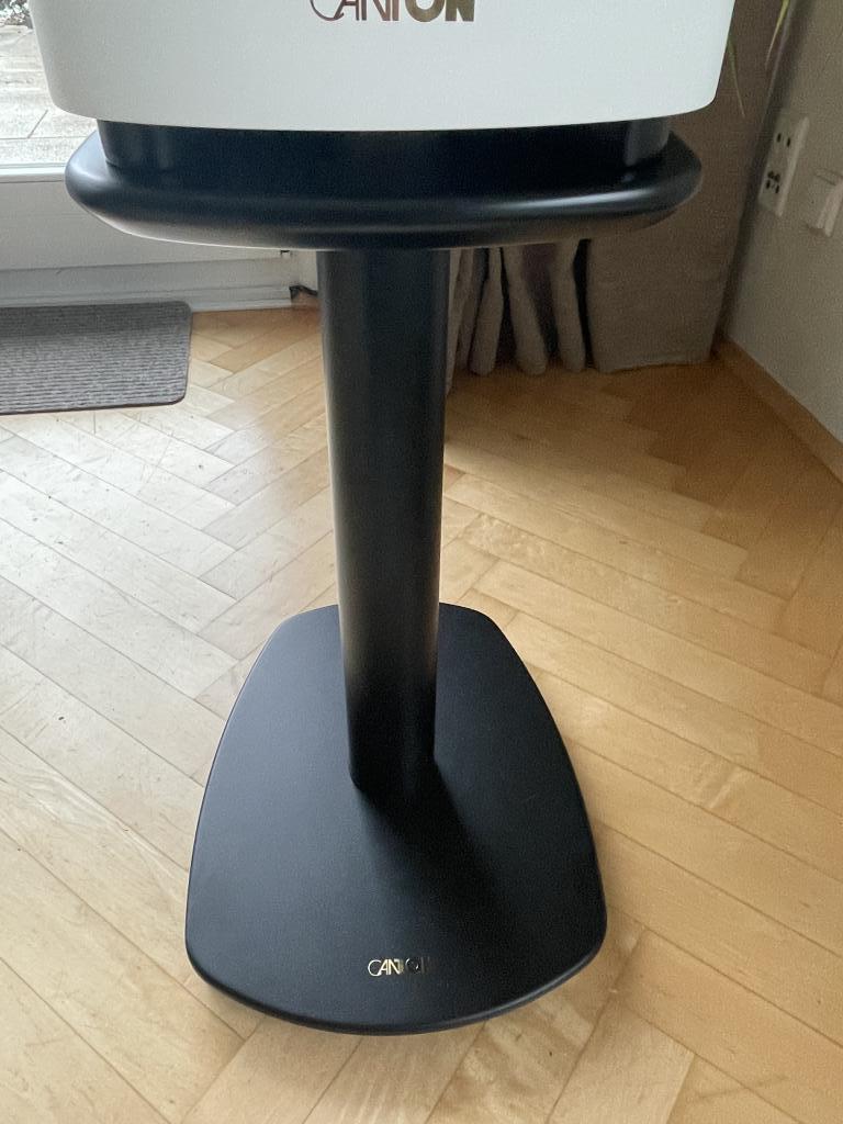 Mit einer innenliegenden Pappabdeckung zur Kabeldurchführung aufgerüstet; können mit Sand befüllt werden, was die Standfestigkeit erhöht und Resonanzen reduziert.