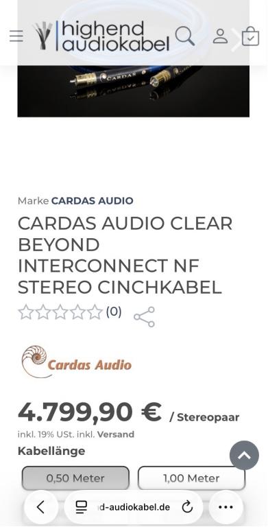 1 Paar Cardas Clear Beyond in gerade noch erschwinglicher 0,5m Länge.