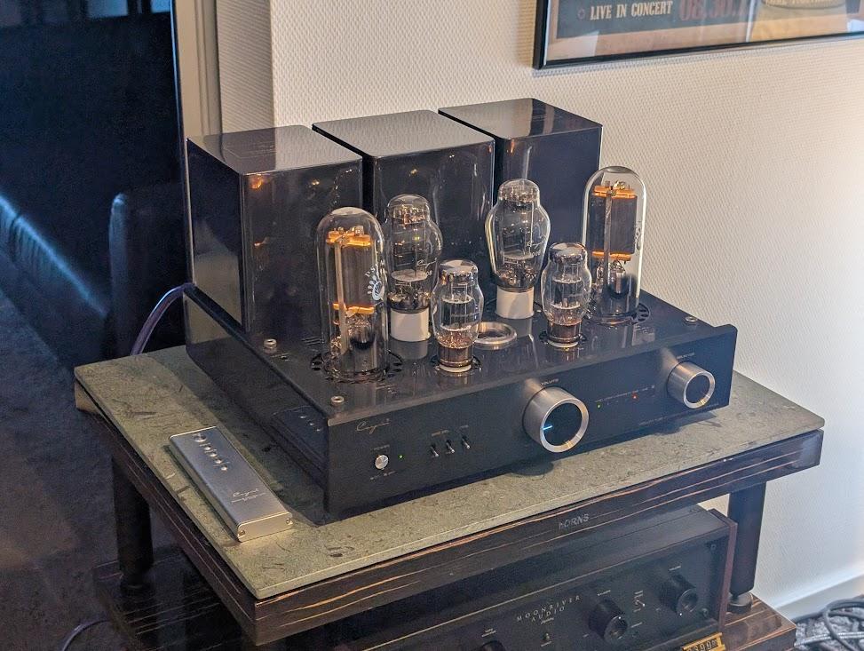 Cayin CS-845A – Single Ended Class-A Amp mit 24 Watt pro Kanal (sowohl an 4 als auch an 8 Ohm). Handgefertigte Herstellung mit hochpräziser Punkt-zu-Punkt-Verkabelung. Gewicht: 37 kg. Aus Erstbesitz ca. 1,5 Jahre alt mit OVP, Fernbedienung, allem Zubehör und 12 Monaten Gewährleistung.