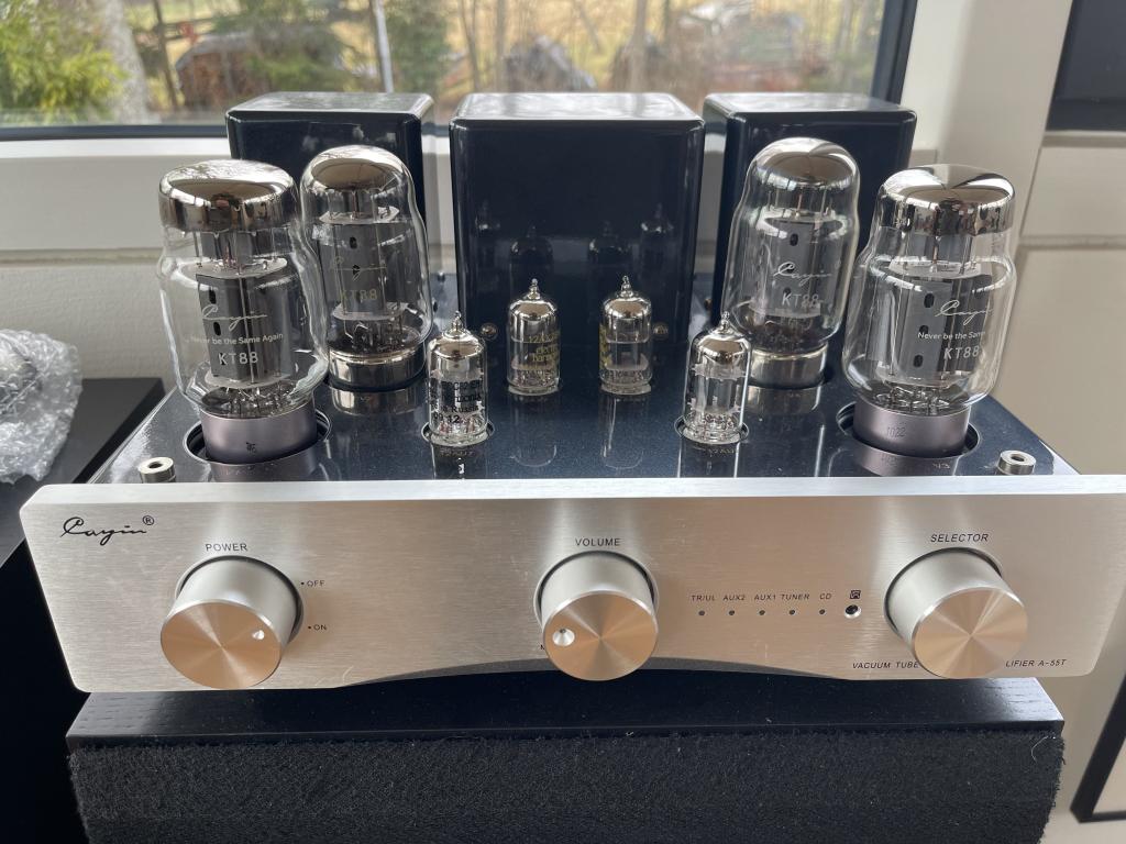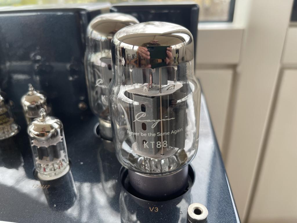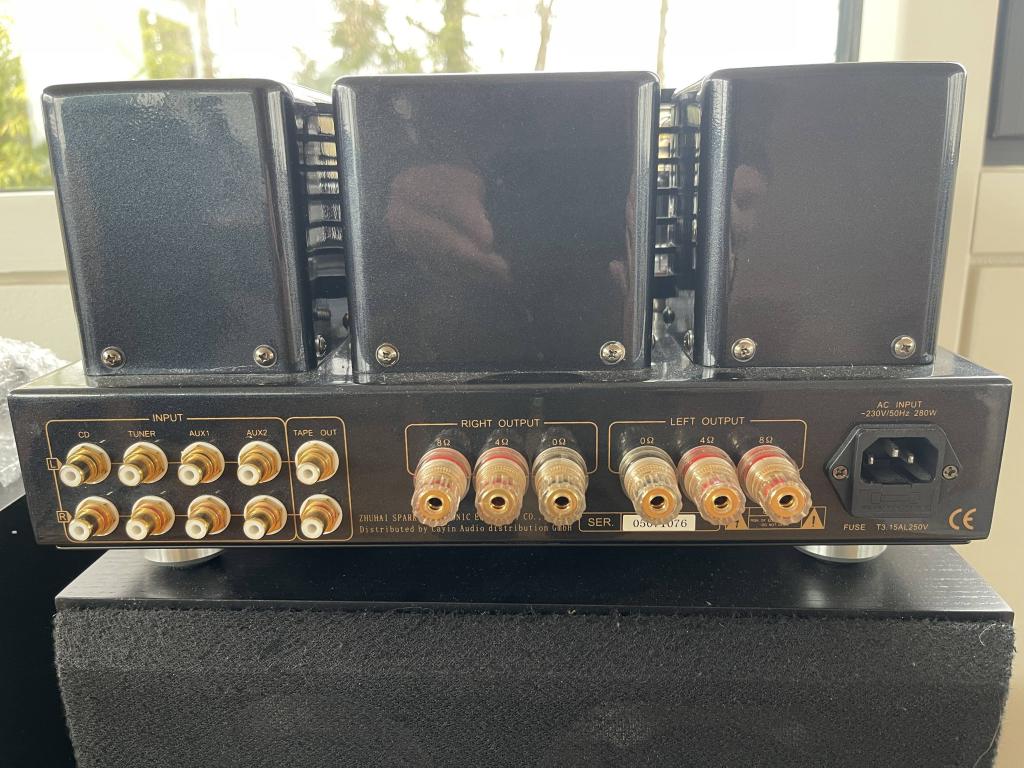 Der besondere Klang kommt durch die KT88 Röhren. Vor kurzem wurde das Gerät überprüft und zwei neue Röhren von Cayin eingesetzt. Ich habe das Gerät bei einem Händler gebraucht gekauft, um den Klang von einem Röhrenverstärker zu testen. Aus diesem Grund hat das Gerät noch fast ein Jahr Garantie. Ich verkaufe das Gerät nur, weil ich ein anderes Gerät mit den passenden Lautsprecher bekommen habe.