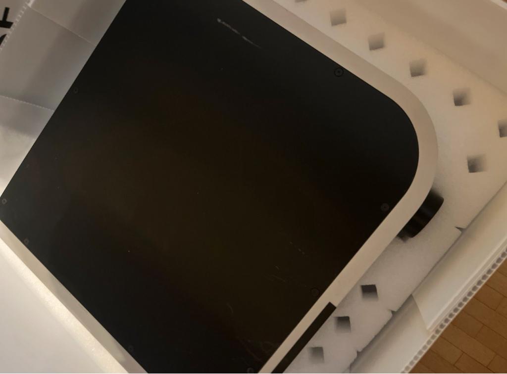 Die Oberfläche hat ganz leichte Kratzer, von vorne / der Seite ist nichts zu sehen.