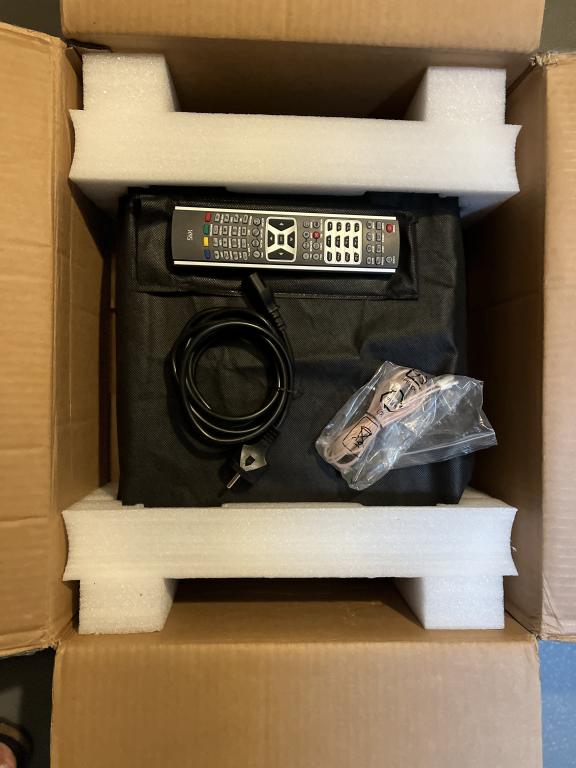 Inklusive Fernbedienung, Antennenkabel und Netzkabel. Originalverpackung.