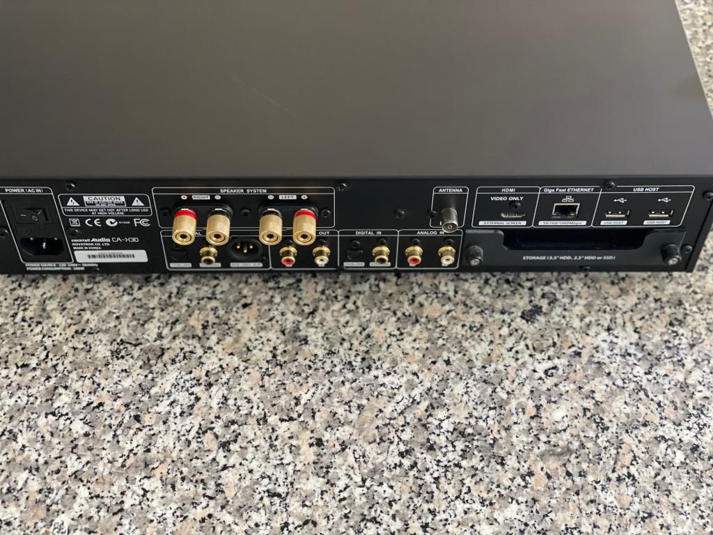 Ausgänge:Lautsprecher, Kopfhörer (Front), Analog (Cinch), Digital (Coaxial, Toslink, AES/EBU XLR), HDMI
