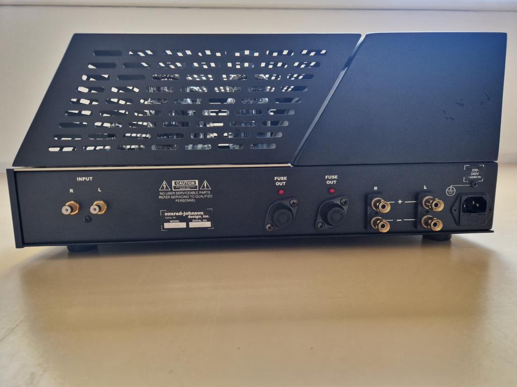 Angeboten wird eine revidierte Conrad-Johnson Premier 140 Endstufe in der 230V-Ausführung, inklusive werksseitiger Teflon-Kondensatoren, Tung-Sol KT120 Röhren sowie zusätzlich die originalen Svetlana 6550C (KT88) Röhren. Der Originalkarton ist enthalten.