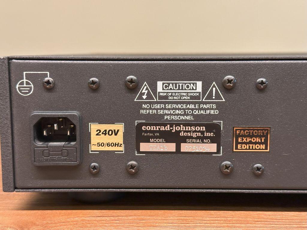 Conrad Johnson TEA1b tube preamplifier in excellent operational and cosmetic condition. (see photo, there is a small mark on the left side of cover) 230V model.