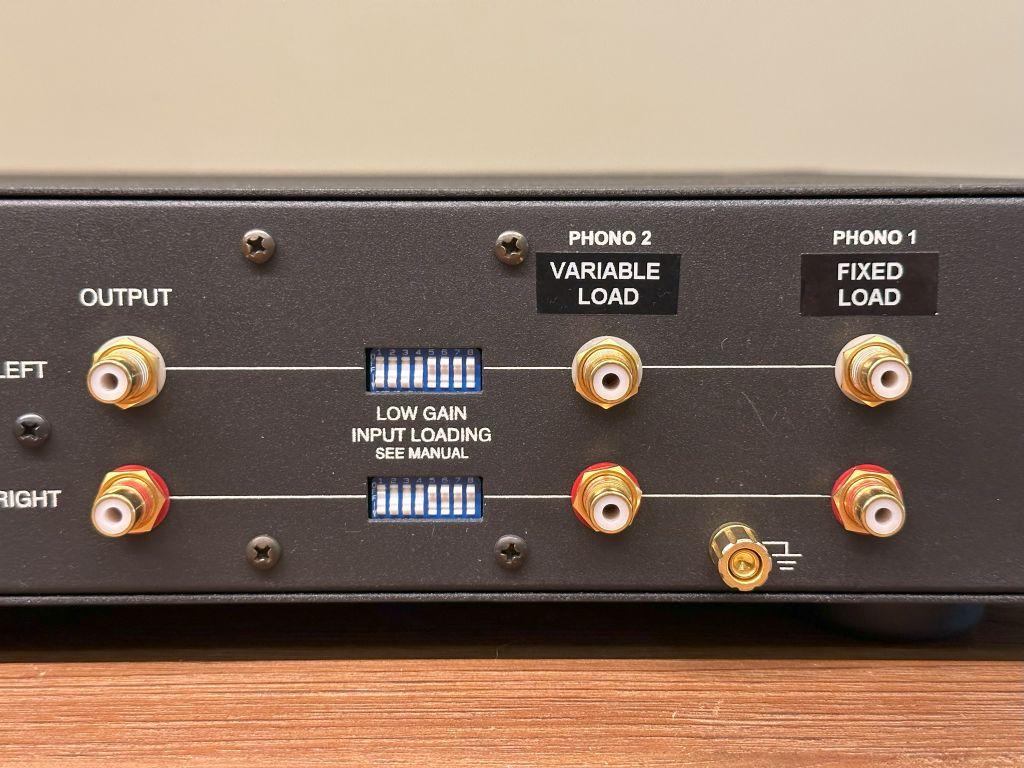 In the TEA1b, the two phono inputs each provide 54.5 db of gain. Resistive and capacitive loading can be adjusted by toggle switches on the PHONO 2 / Variable Load input. Uses three 12AX7 tubes.