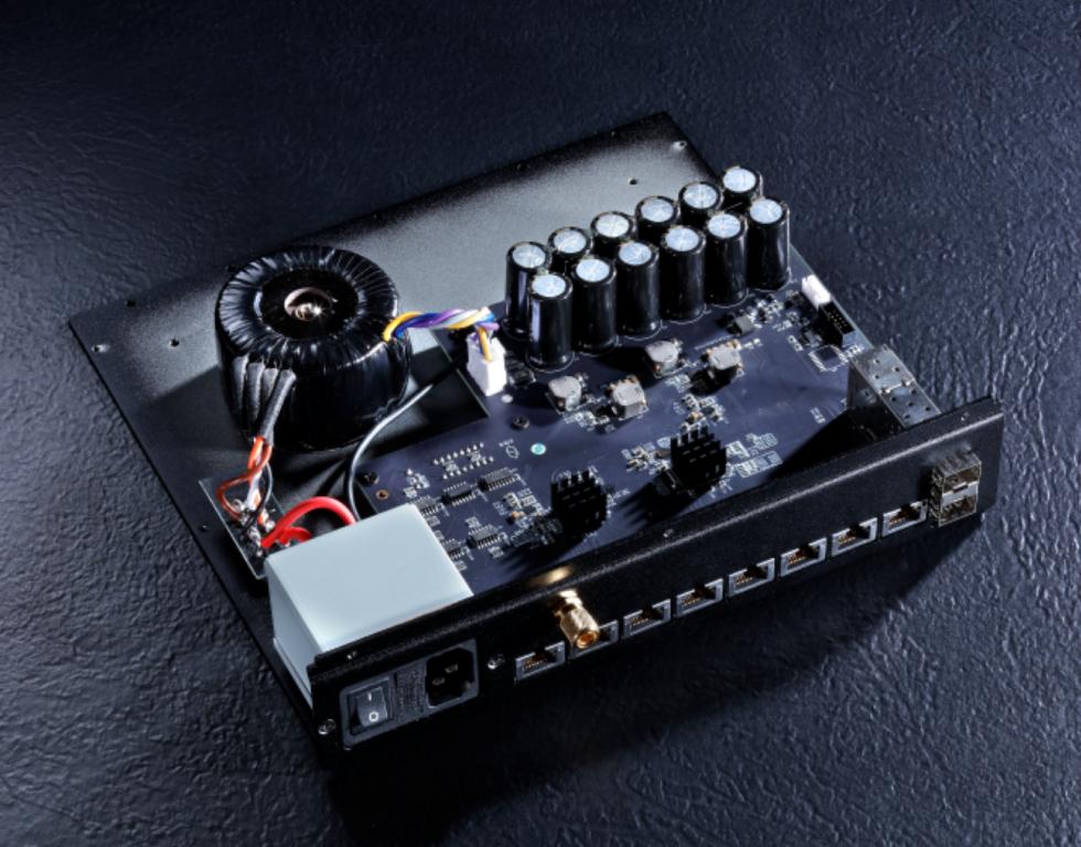 Top quality audiophile Ethernet switch with LAN amd Sfp inputs/outputs.