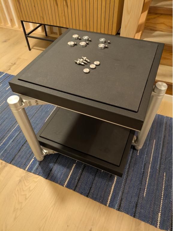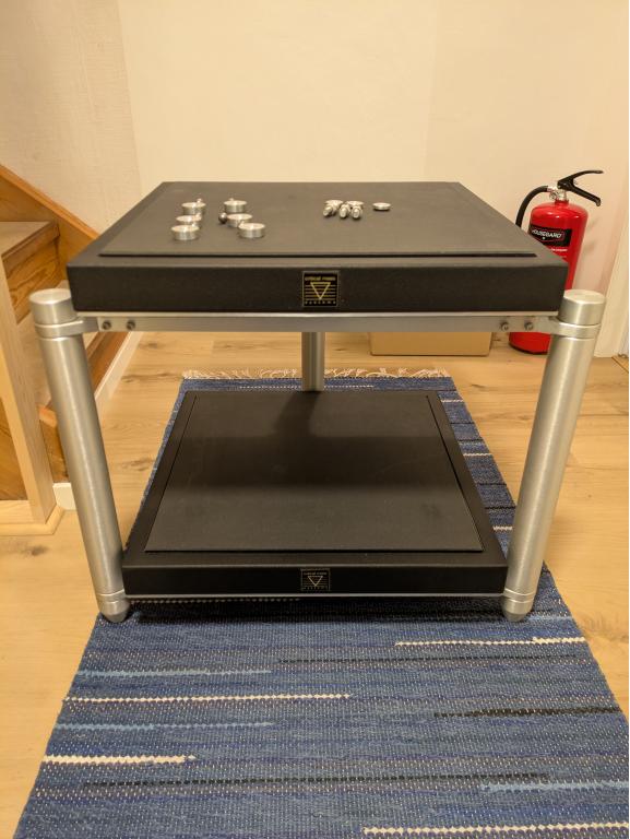 An equipment rack designed for high end audio systems to provide realism in listening experience. Constructed using patented vibration damping shelves. A leap forward in the reduction of noise without loss of musical detail.