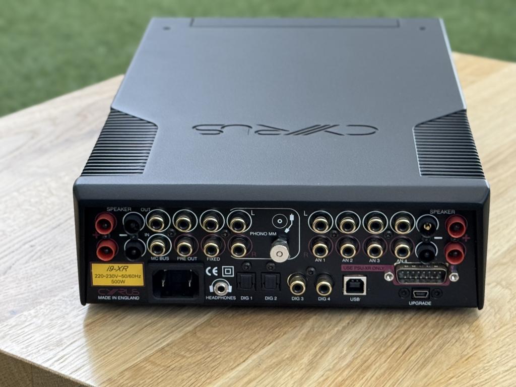 Der i9-XR verfügt über einen Anschluss für das neue Netzteil PSU-XR. Vor dreißig Jahren betrat Cyrus mit der Einführung des PSX-R neue Wege, dem ersten geregelten Netzteil-Upgrade überhaupt, das sich automatisch perfekt an den Strombedarf aller angeschlossenen Produkte anpasste. Das PSU-XR legt die Messlatte höher, indem es nicht weniger als fünf unabhängige regulierte Netzteile in einer einzigen Box enthält. Beim i9-XR ist ein Paar davon dafür vorgesehen, den Vorverstärker mit extrem gleichmäßiger Leistung zu versorgen, und ein zweites Paar sorgt für einen enormen dynamischen Boost für den Leistungsverstärker.