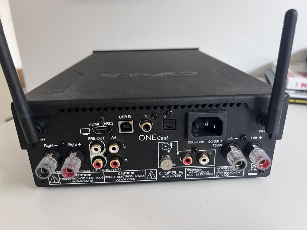 Der Cyrus ONE Cast ist ein vielseitiger Streaming-Verstärker mit 100 Watt pro Kanal, der als zentrale Steuereinheit für Ihr Heimkino dient. Er unterstützt hochauflösendes Audio-Streaming über Google Chromecast, Apple AirPlay 2 und Sprachsteuerung (Alexa/Google Assistant). Er verfügt über integrierte Phono-Eingänge (MM), HDMI ARC für Fernseher und einen hochwertigen 32-Bit-DAC von ESS. Hauptmerkmale und Leistung: Streaming & Steuerung: Es ist keine separate App erforderlich; der Verstärker funktioniert direkt mit Diensten wie Spotify, Tidal und Qobuz über bestehende Apps. Er unterstützt Multiroom-Audio. Verstärkung & Klang: Er verwendet einen Hybrid-Class-D-Verstärker (4. Generation) mit einer Ausgangsleistung von 2 × 100 W (6 Ω). Es verfügt über eine Lautsprecherimpedanzerkennung (SID) zur automatischen Kalibrierung an die Lautsprecher. Anschlüsse: HDMI (ARC), optischer, koaxialer, USB- (asynchron für PC), Phono-MM- und Cinch-Eingang. Außerdem ist ein Class-AB-Kopfhörerverstärker integriert. Design: Ein kompaktes, nur 22 cm breites Gerät mit hochwertigem, dezentem Design. Der ONE Cast eignet sich ideal für moderne HiFi- und Smart-Home-Systeme und treibt selbst anspruchsvolle Lautsprecher mühelos an.