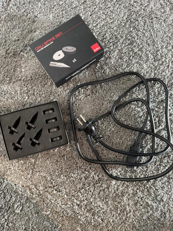 Im Lieferumfang enthalten ist: Dali Sub M-10D, Netzkabel, Spikes, Fernbedienung und eine neutrale Verpackung.