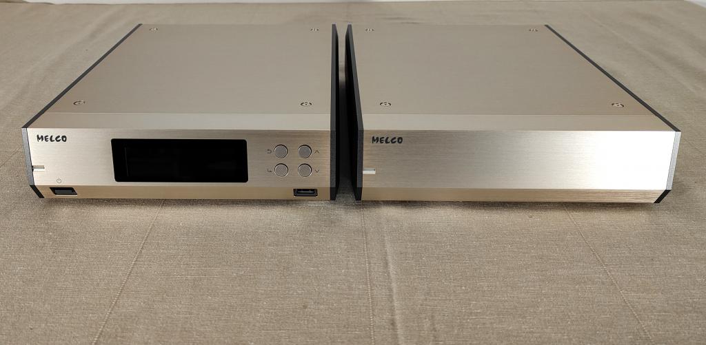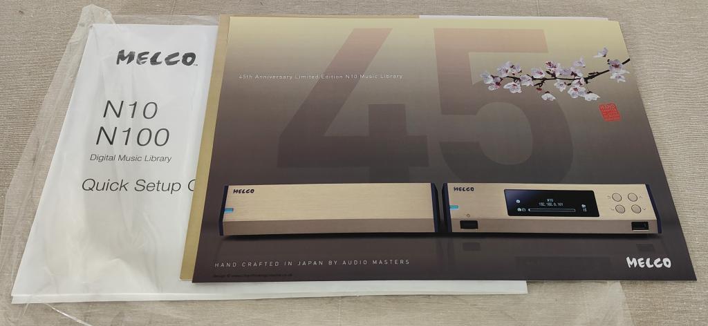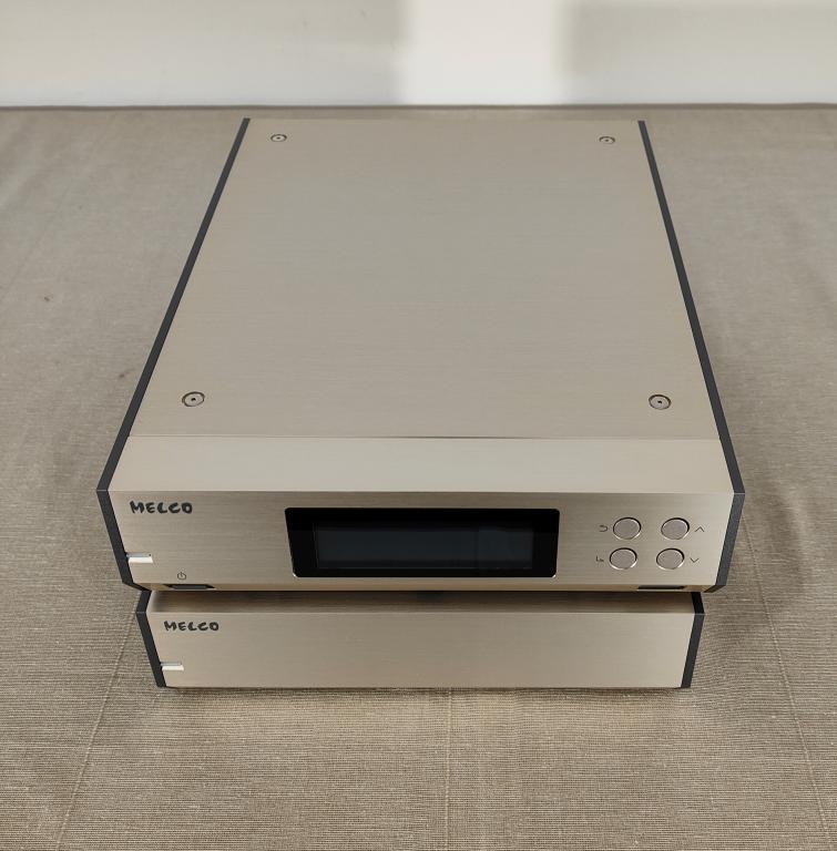 Up for sale is my Melco N10 5 terabyte music library and streamer. The 45th anniversary is a limited to 50 pieces edition in a super chic champagne color (perfect if you have accuphase gear...), 5tb hdd (instead of the standard 3tb) and an amazing kit of Melco accessories (see pictures). It is in perfect conditions without scratches and it obviously work perfectly. Can stream files fron internal storage/external extra usb disk, nas or Tidal/Qobuz. Roon is fully supported. Signal output is via usb or ethernet. Sound quality is superb and it is a pleasure for the eyes too. Full set of accessories and original box. Retail price was 8500 euros.