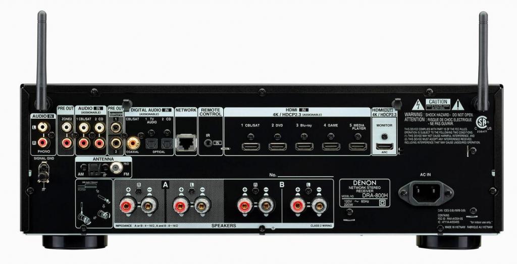 Der DRA 800 reiht sich nahtlos in die neuesten Denon Hi-Res-Audio-, Wireless-, AV-Receiver-Technologien mit (!) Sprachsteuerung ein. In typischer Art des Hauses Denon ist er ausstattungstechnisch mit allem ausgerüstet was aktuell möglich ist und avanciert zu einem der "heißesten" Empfehlungen in seiner Anwendungs- & Preis- Klasse. Neben hochwertigen Lautsprecher - Anschlussterminals am Amp-Ausgangsbereich, bietet er im AV-Bereich die Möglichkeit ihn über fünf 4K Ultra HD-HDMI-Eingänge zu kontakten & natürlich auch einen HDMI-Out, inclusive ARC. Selbst die Ausgangsleistung ist mit beachtlichen 100 Watt/ Kanal satt ausgelegt! Die realisierte Klangqualität über diesen Receiver ist im Bereich seiner Preisklasse nicht nur sehr gut, sondern sogar eine kleine Sensation.