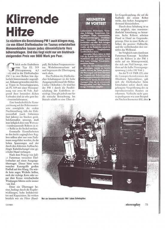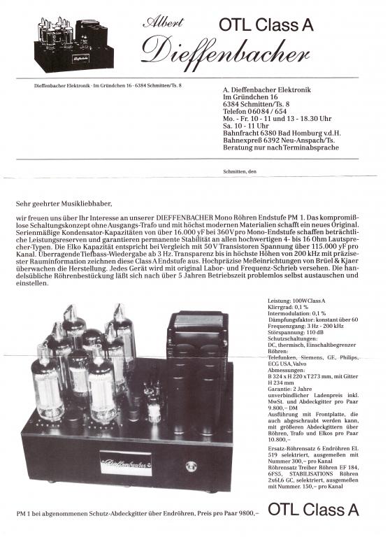 Diverse / Andere Dieffenbacher PM 1 OTL Class A Mono Röhren Endstufe