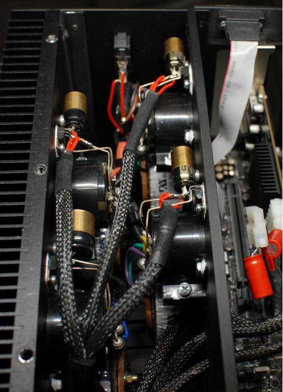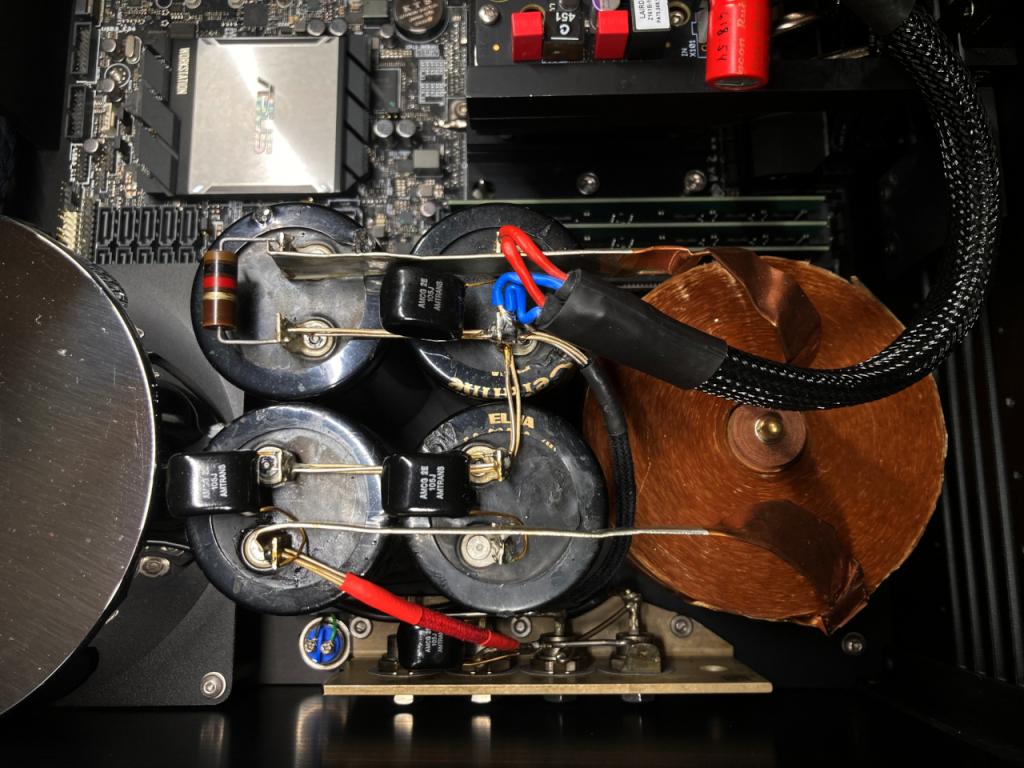 - 4 separate auxiliary power supply circuits with Noratels, Nichicon Black-Gold and BlackGate F capacitors + BlackGate NX caps on ends ( 3x5V, 1x12V )