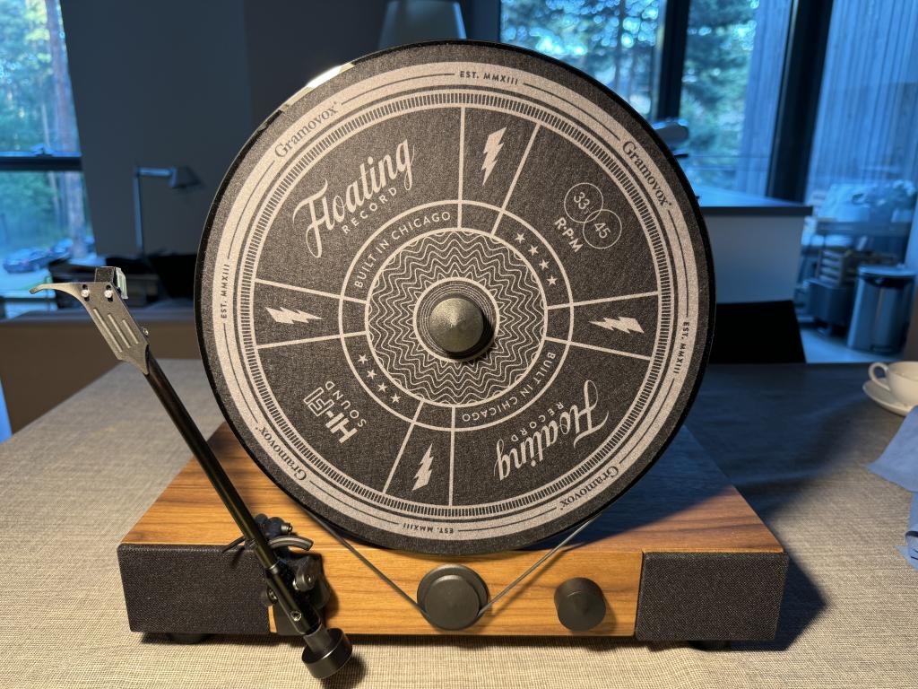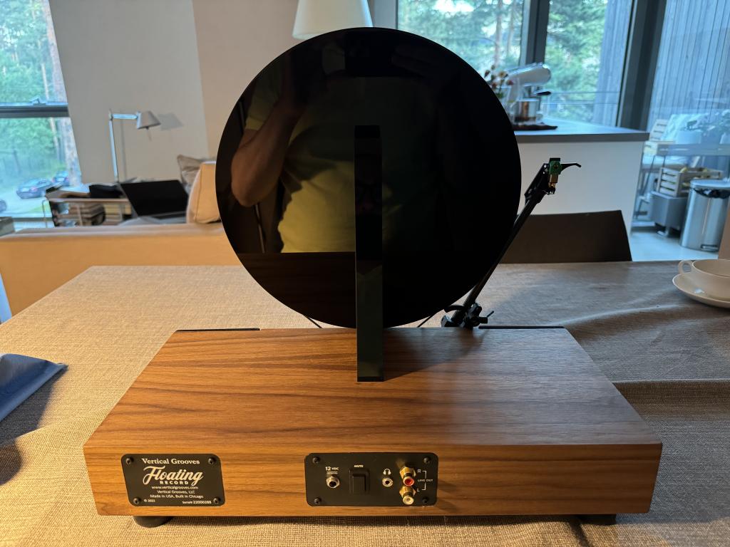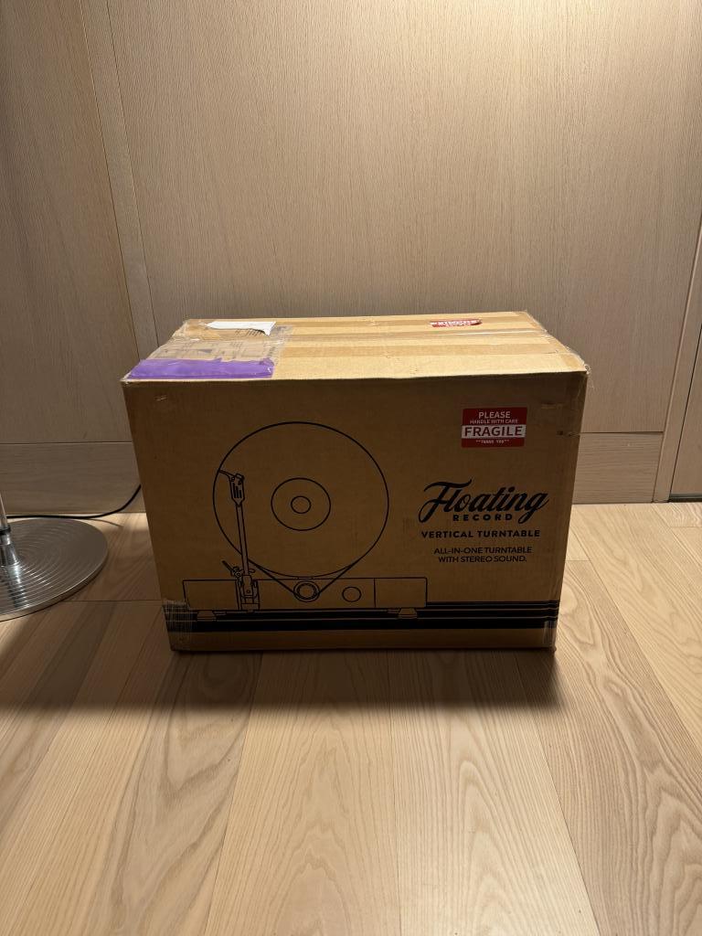A high-performance vertical turntable that plays your vinyl records vertically through built-in, dynamic, full-range stereo speakers.