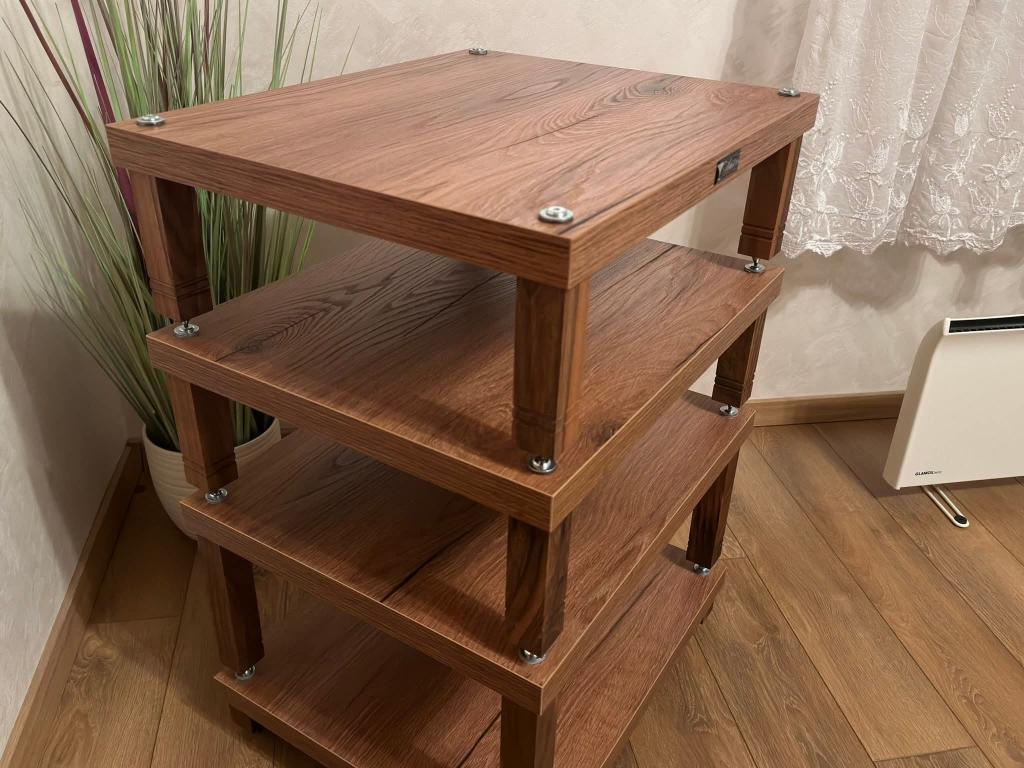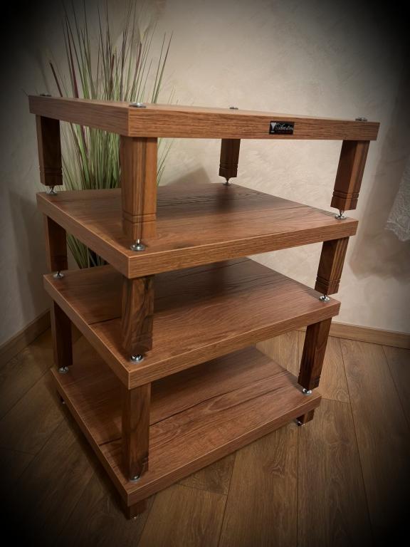Ich verkaufe meine HiFi Rack,Hergestellt aus massivem univer mit Eichenfurnier und mit eingebauten beinen aus 1 Klasse Massives Nussholz und den Spikes aus titanium.