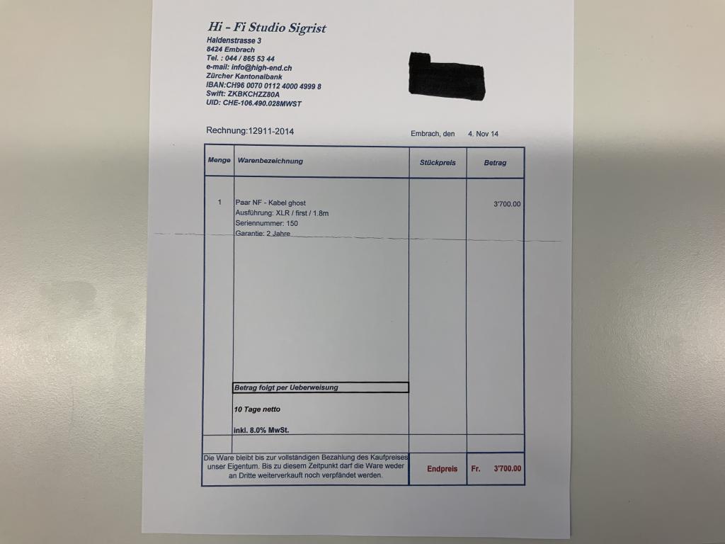 Diverse / Andere Lautsprecherkabel SW Ghost 1409, Swiss Made by Peter Sigrist Ghost Cables, 3.8 m inkl. Spezial Erdungsbox und NF Kabel XLR mit Erdungsanschluss. 1,8 m und Erdungssystem für Verstärker, CD, Plattenspieler