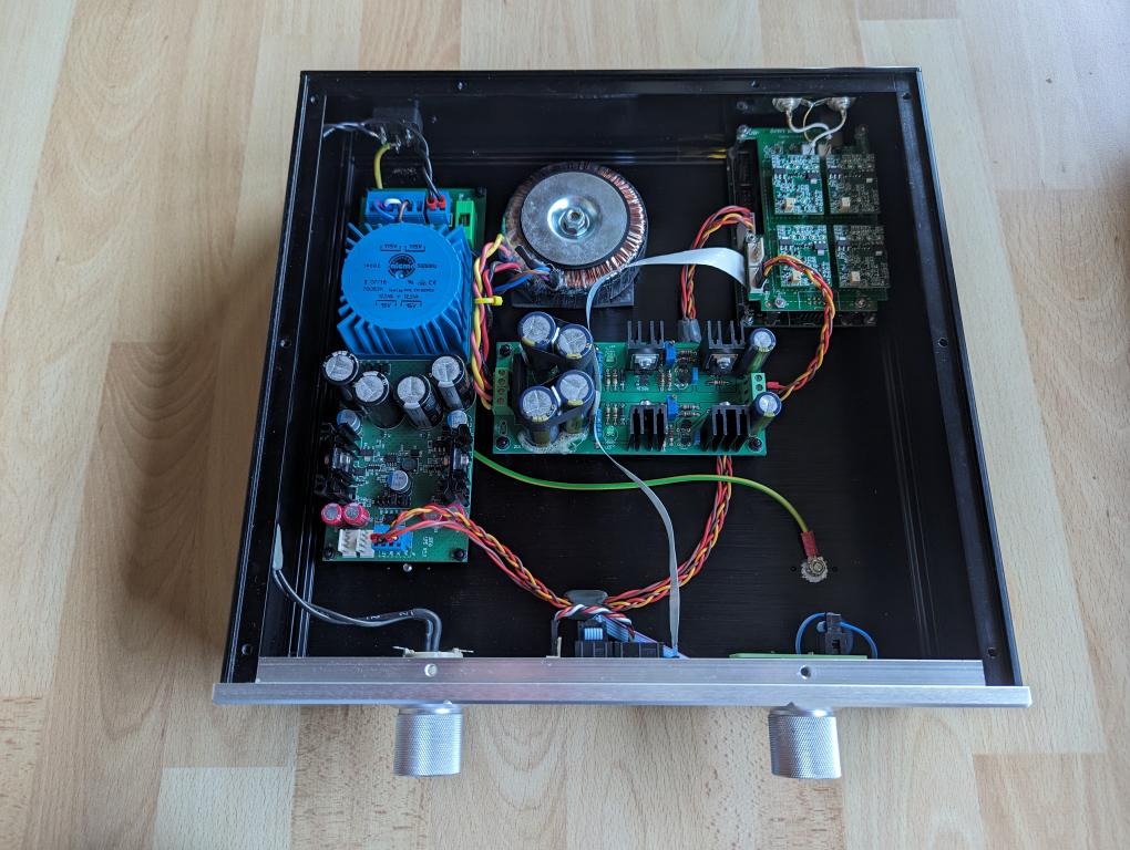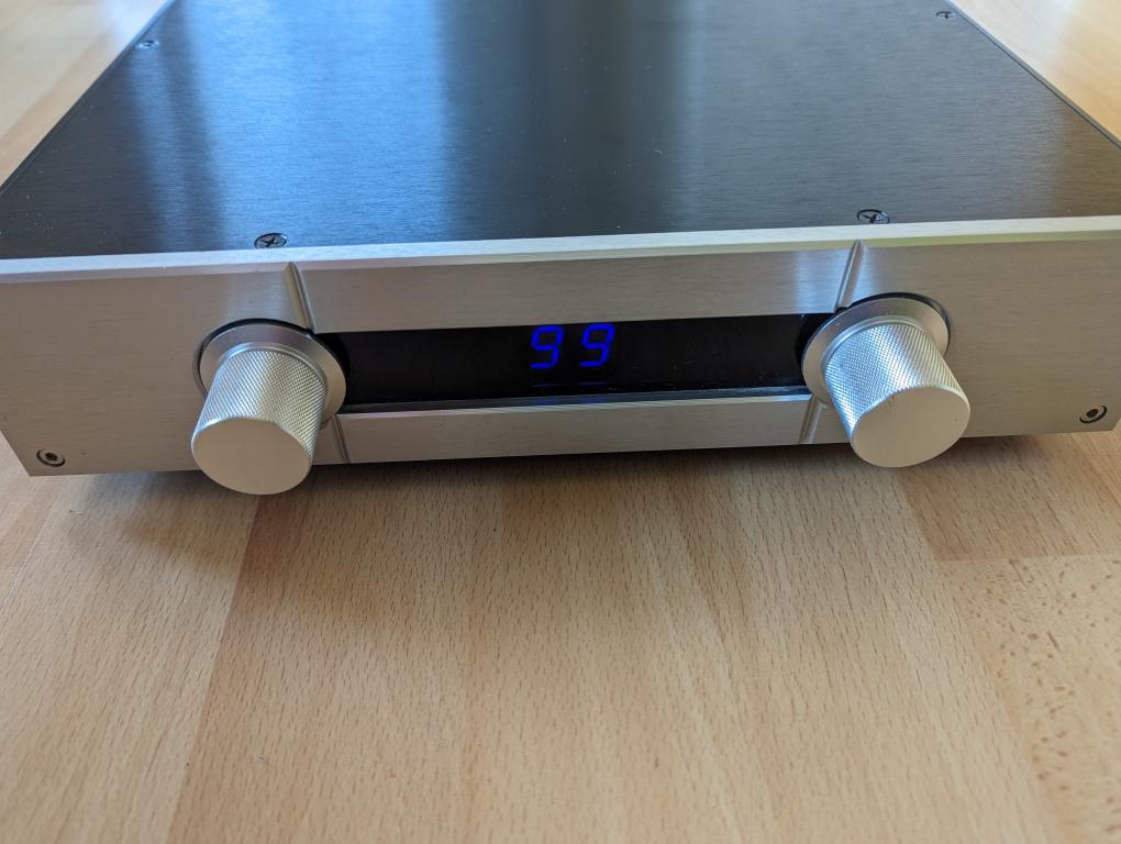 Verkauft wird ein Mirand DAC. Mirand war die DiY-Sparte von Phison Audio (https://phisonaudio.dk/). Den DAC hat 2021 ein Bekannter für mich gebaut, der ausgebildeter Elektroniker und HiFi-Enthusiast ist. Es handelt sich um die V1.2A Version des Mirand-DAC-Boards. Der DAC wurde eigens in ein sehr wertiges Gehäuse mit Display, Ein-Ausschalter und Lautstärkeregler eingebaut.