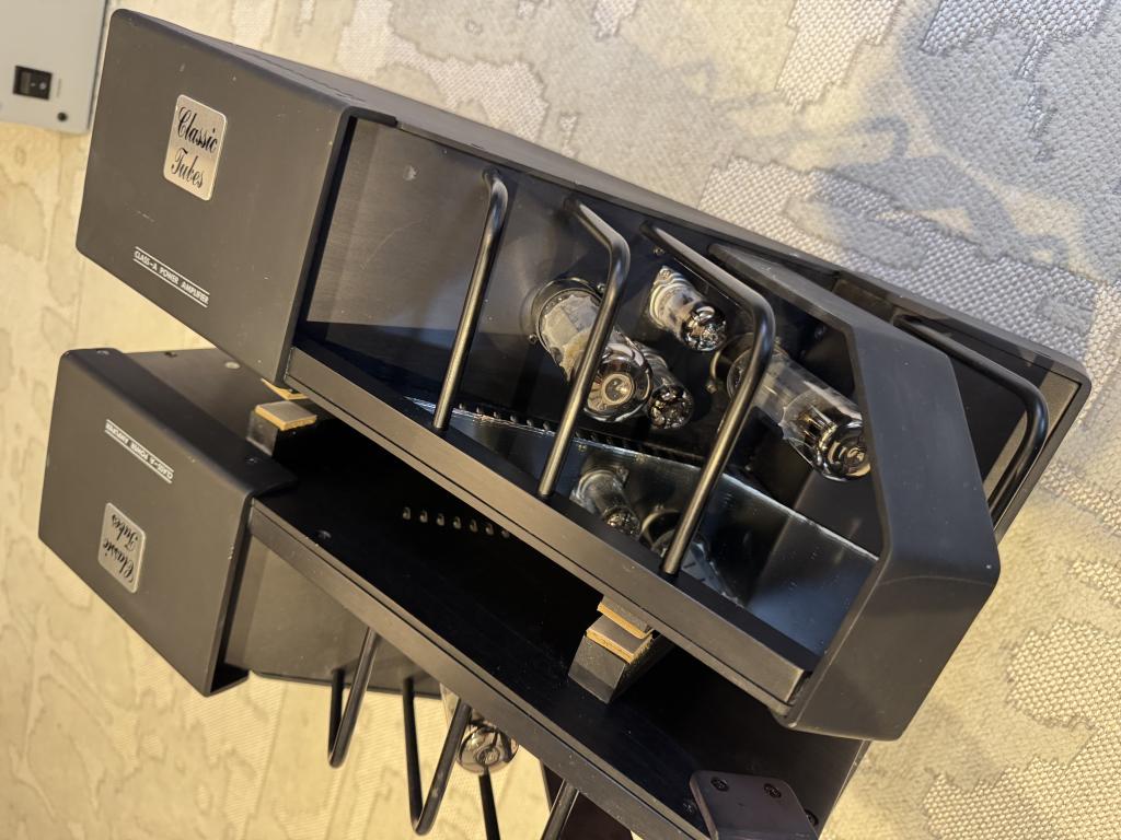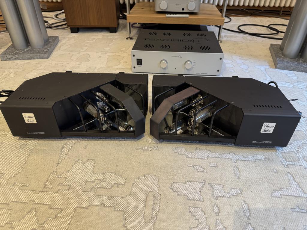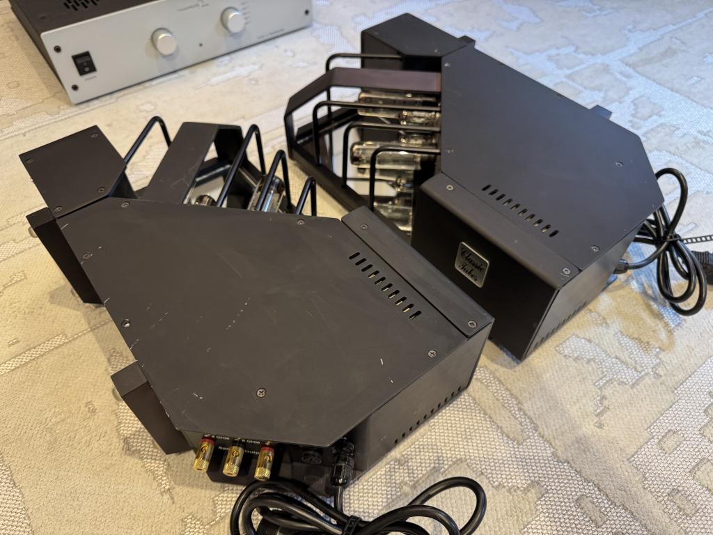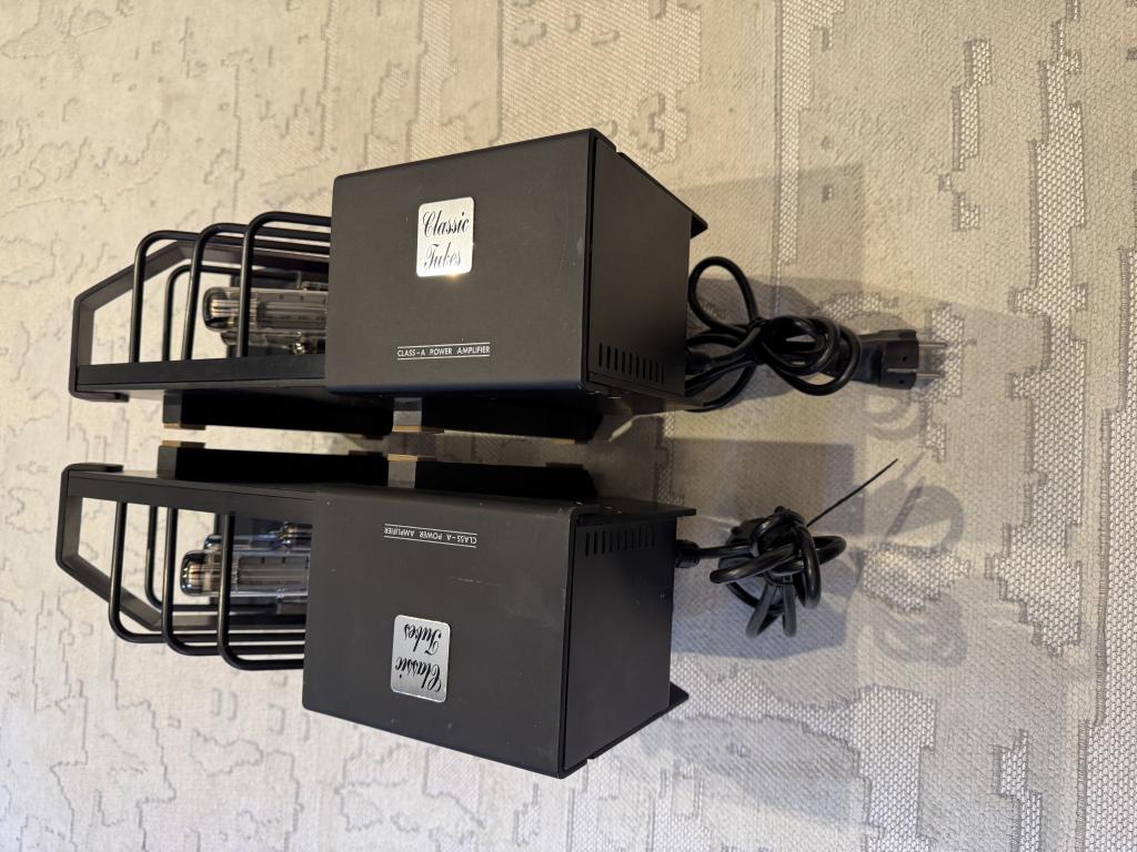 Schöne Röhren Monoblöcke in schwarz. 2 x 15 Watt Class A aus insgesamt 4 Endröhren.