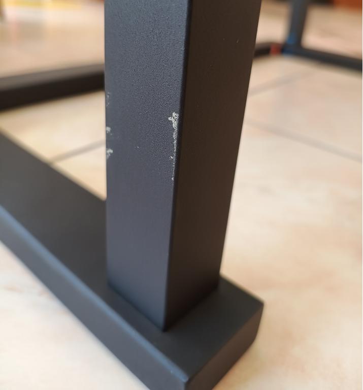 Im unteren Bereich des Rahmens kam es im Laufe der Zeit an einigen kleinen Stellen zum Abrieb der Farbschicht (siehe Detailfotos). Mittels Edding Industrie Lackmarker o. ä. lässt sich das sicher ausbessern.