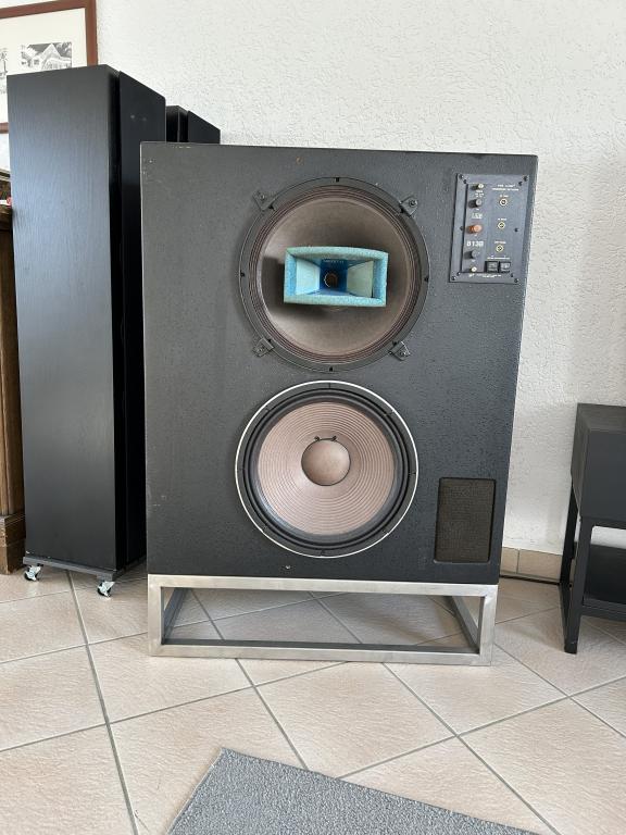 Die Lautsprecher stammen aus dem Rheinklang-Studio von Bodo Staiger (NDW, Rheingold). Ich habe sie dort vor 4 Jahren bei der Studio-Auflösung gekauft. Seit dem stehen sie auf angefertigten Edelstahl-Ständern in meinem Wohnzimmer.