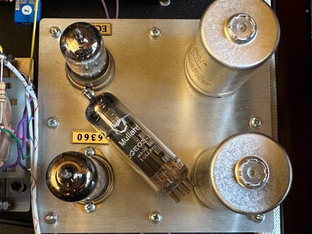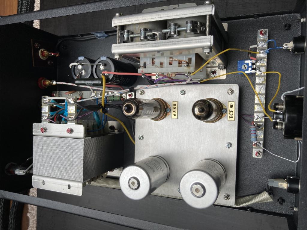 - Endstufe: QQE03/12 – symmetrische Doppelstrahl-Pentode (aktuell: Mullard, optional Tesla)