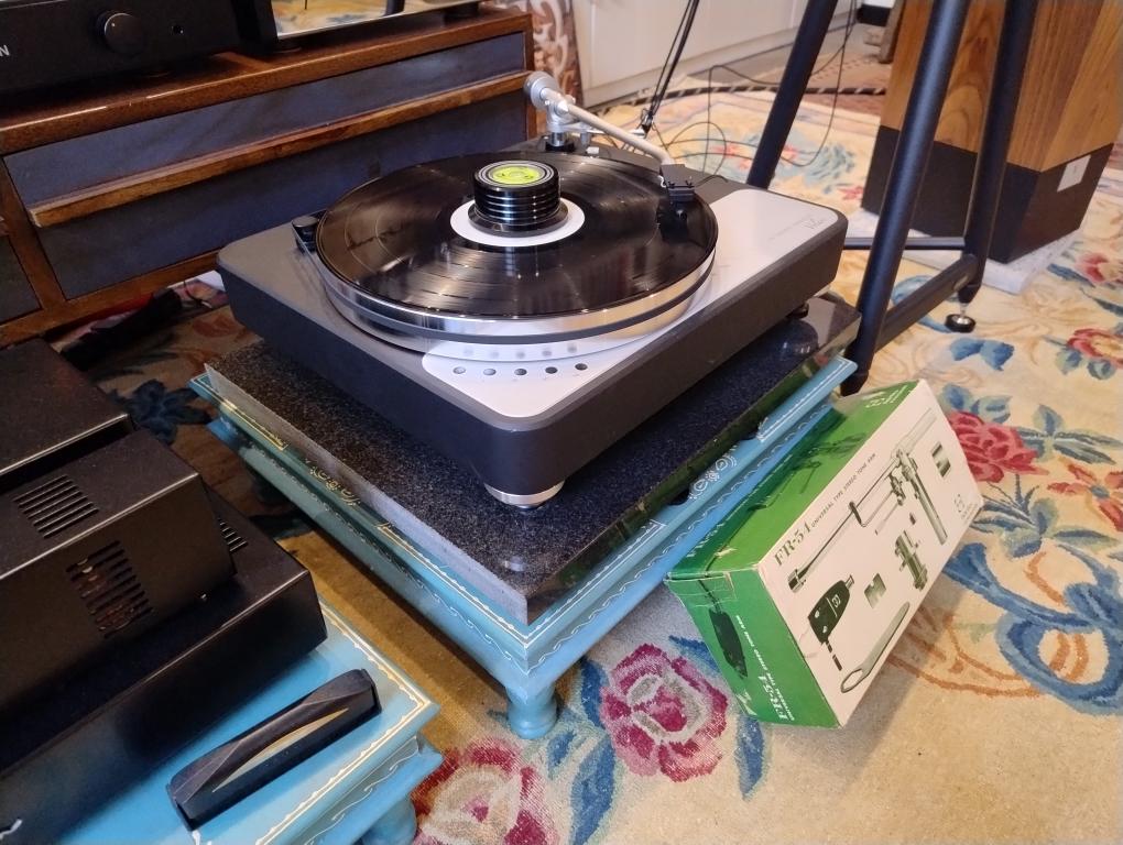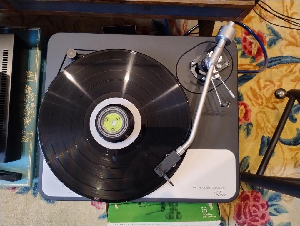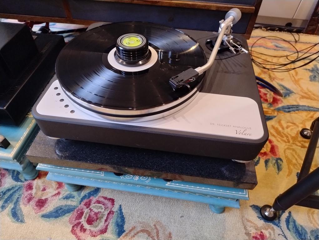 For sale is a Dr. Feickert Volare turntable in pristine condition, only six months old and used as a demonstration model. The mounted tonearm is a Fidelity Research FR54 in perfect working order. The cartridge is not included. Turntable and tonearm are in their original packaging. The turntable is still under warranty and was purchased new from the distributor.