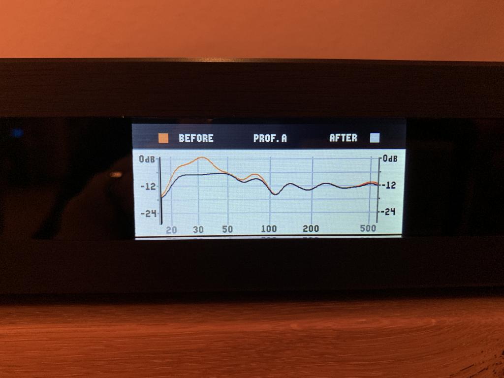 Wie auf den Bildern zu sehen, korrigiert der X4 vor allem Raummoden im Bassbereich und sorgt so für eine deutlich präzisere Wiedergabe. Die Einmessung ist sehr einfach – Mikrofon und Stativ sind im Lieferumfang enthalten.
